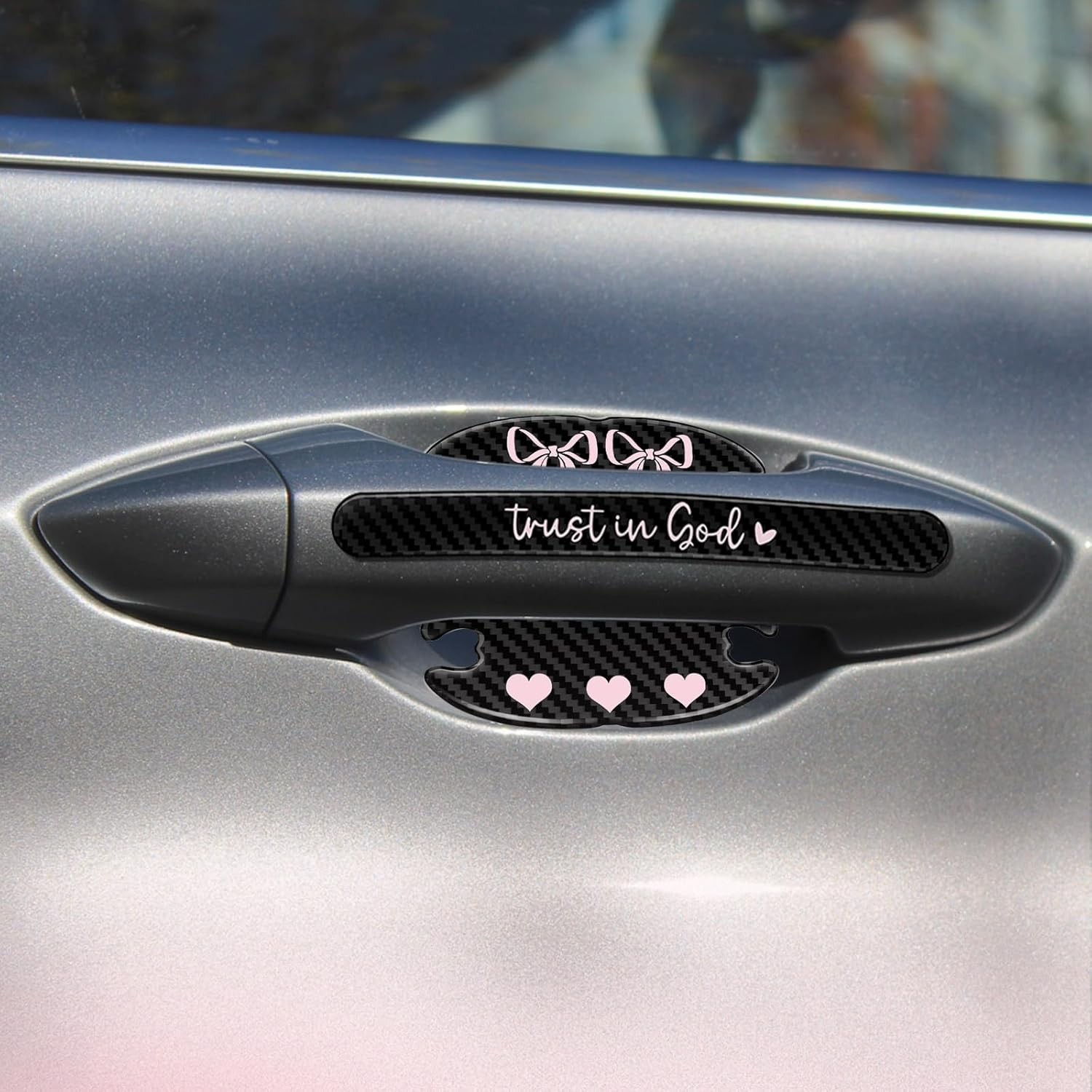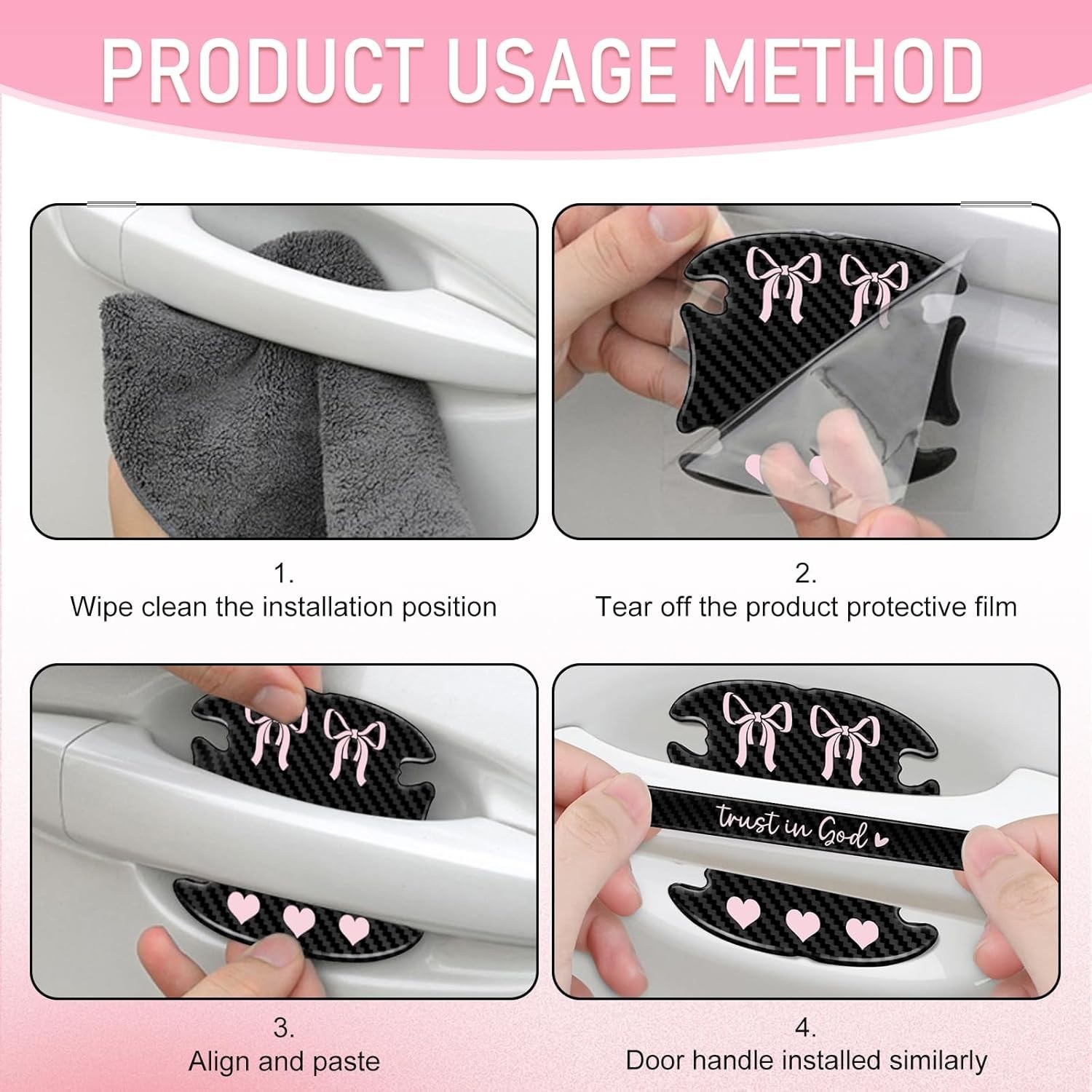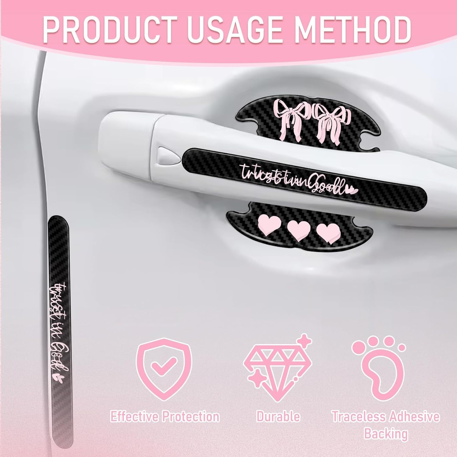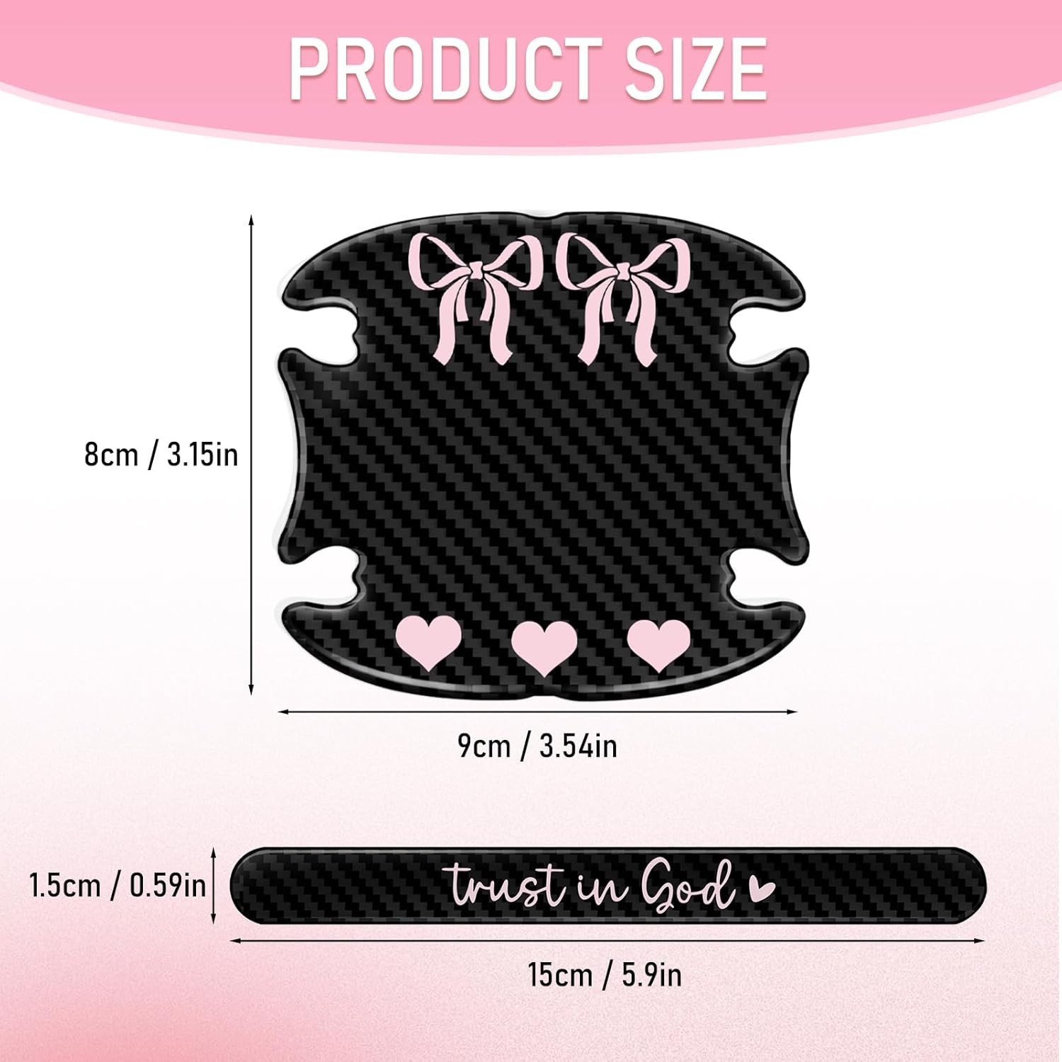 8 PCS , Coquette Pink Bow Cars Door Cup Protector, Automotive Accessories Pro...