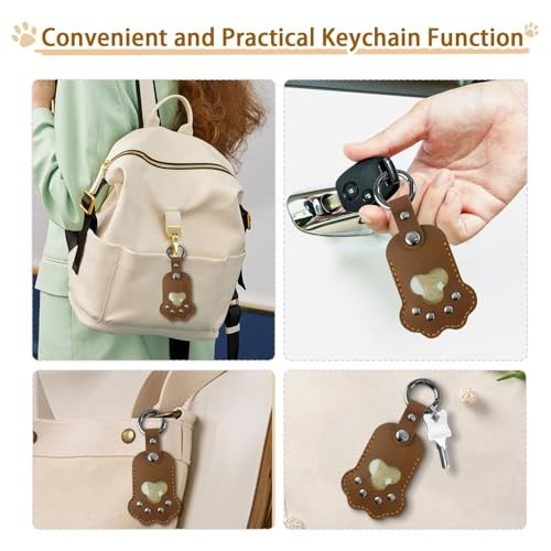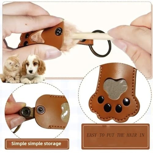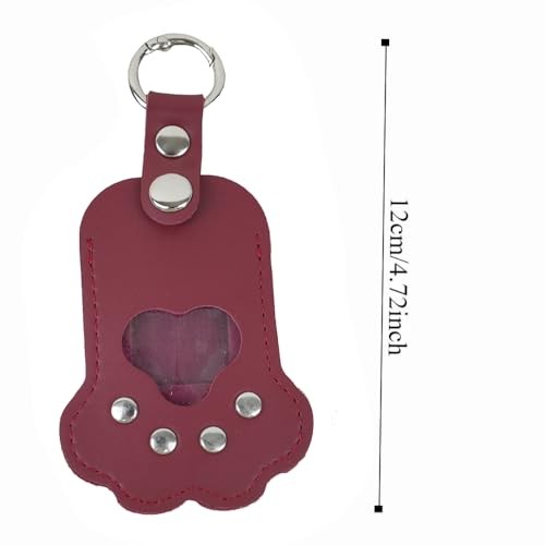 Pet Memorial Keychain, Leather Paw Shape Fur Photo Holder, Handmade Red