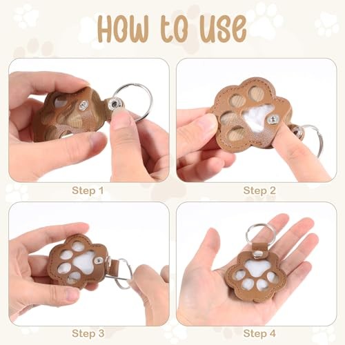 3 PCS Pet Fur Keychain, Pet Paw Shaped Leather Keychain, Dog Hair Keychains,