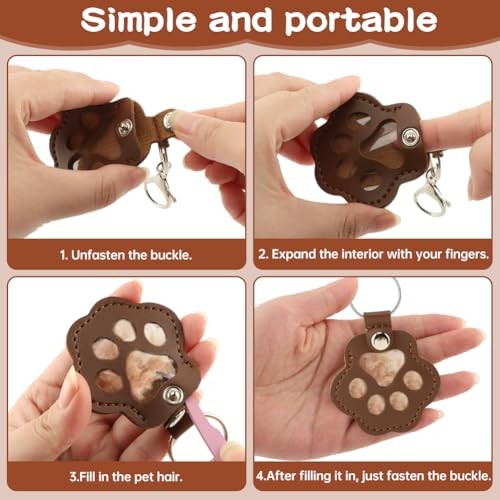 4pcs Dog Fur Storage Keychain Leather Cat Paw Shaped Keychains Pet Dark