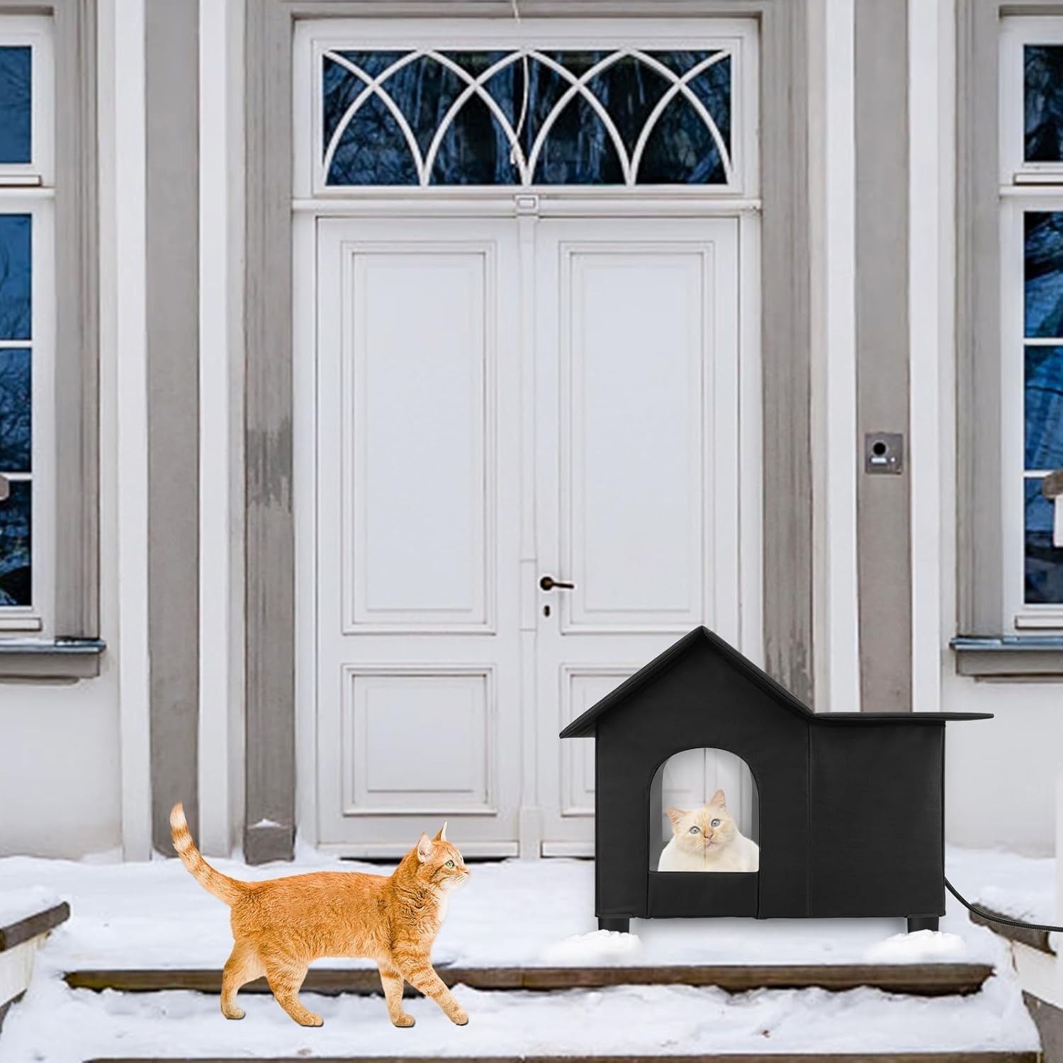 Large Heated Cat House for Outside, Elevated Outdoor Cat House Weatherproof with