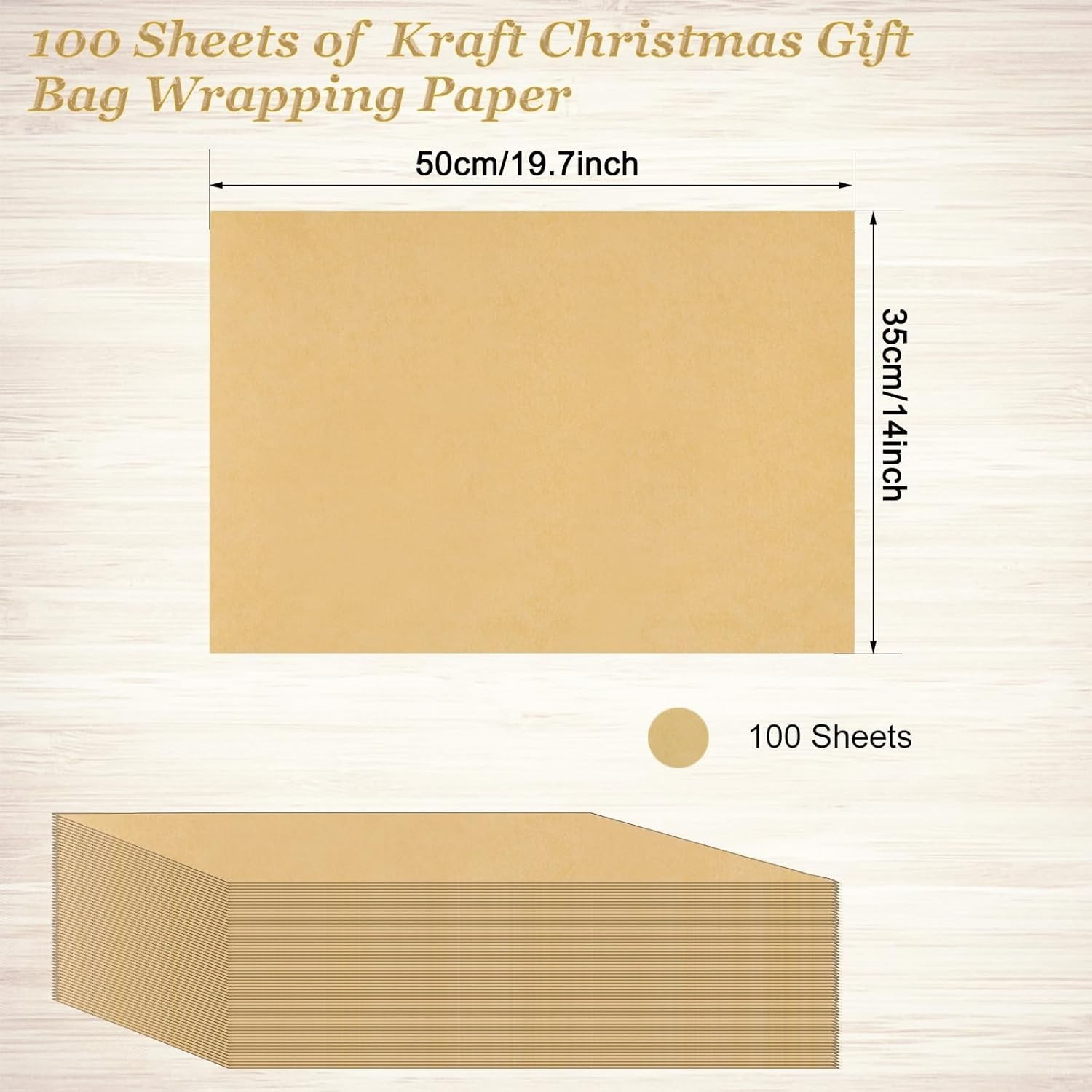 100 Sheets Kraft Tissue Paper 14 x 20 Inches Kraft Wrapping Paper Bulk for We...