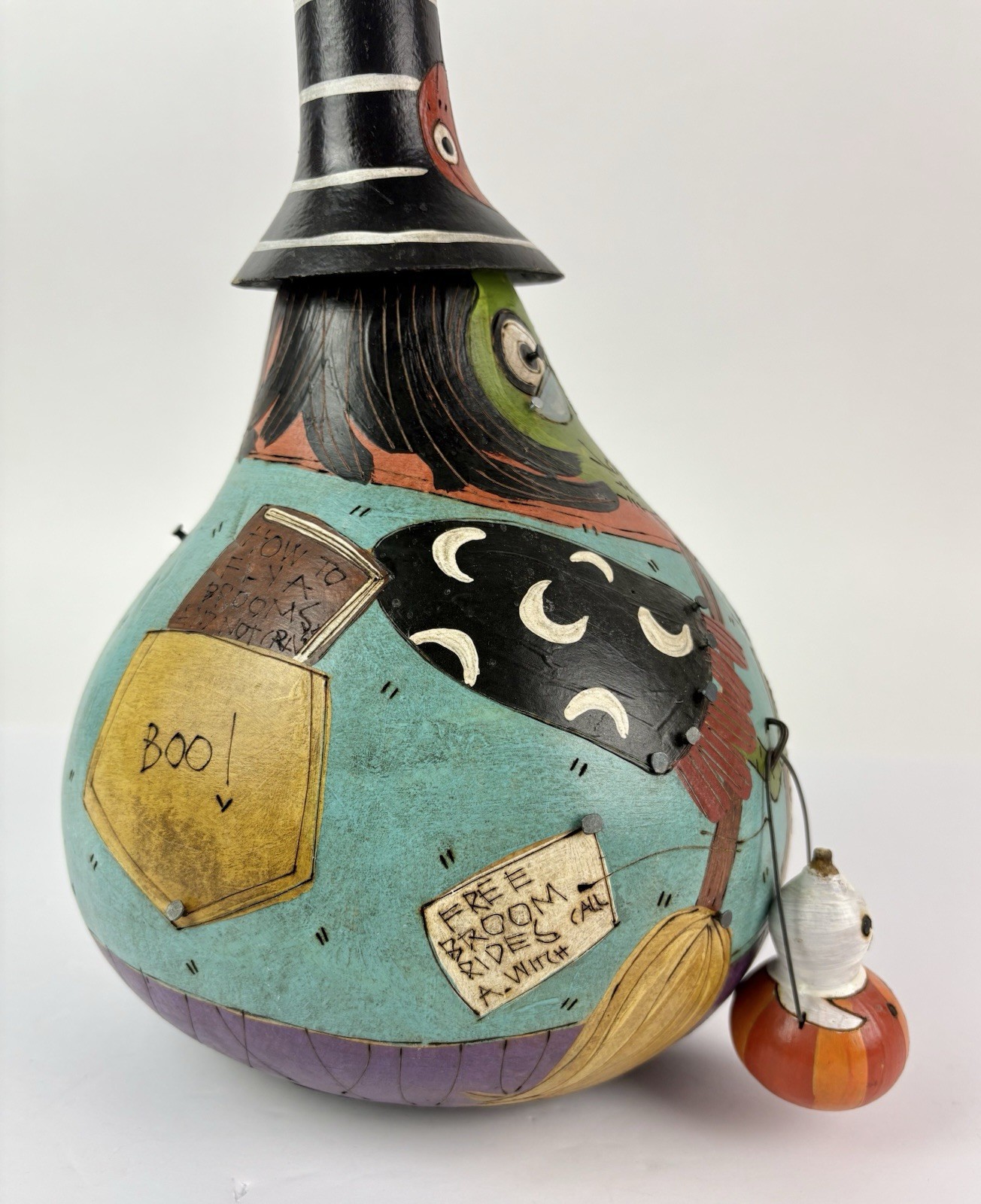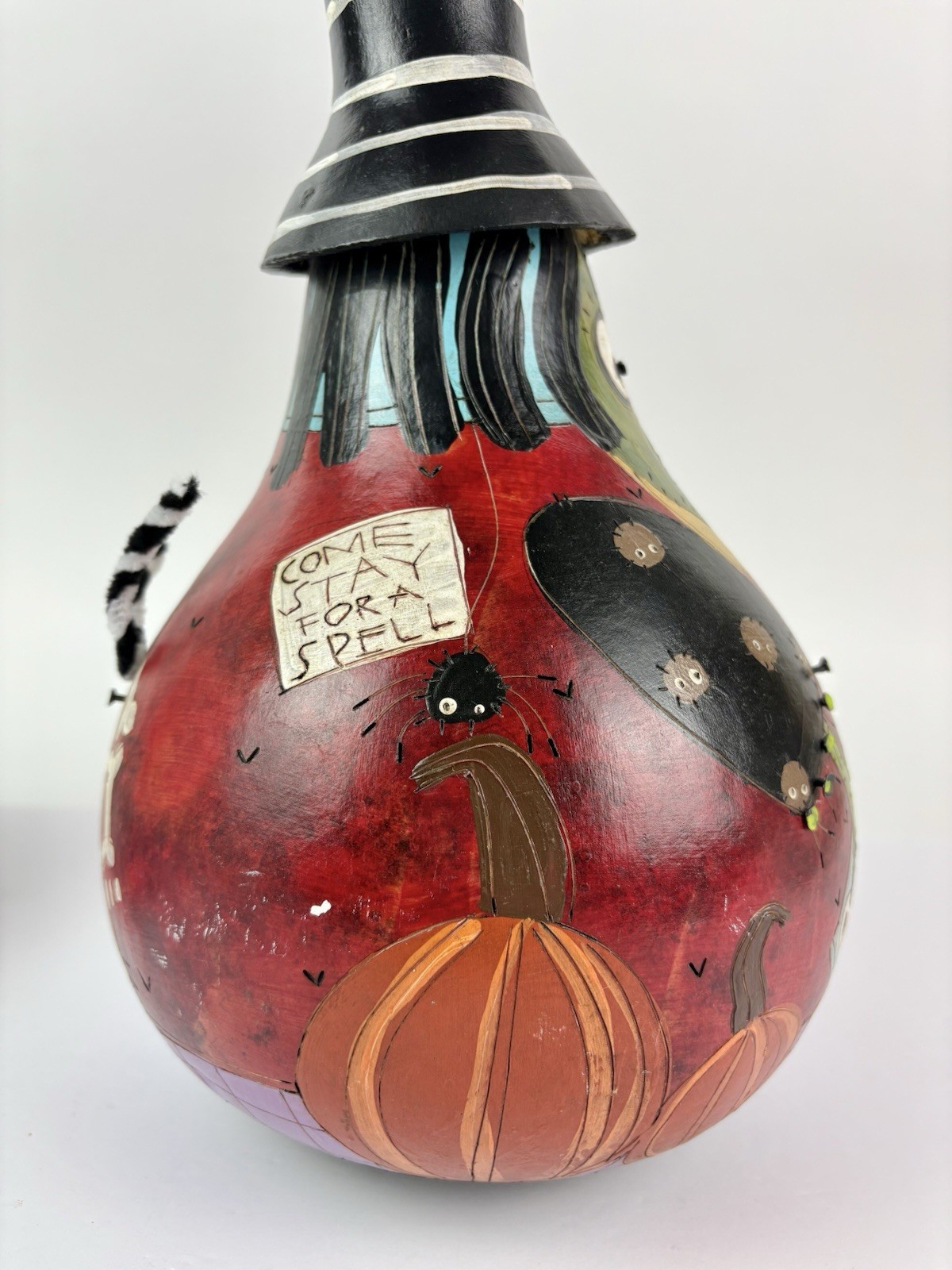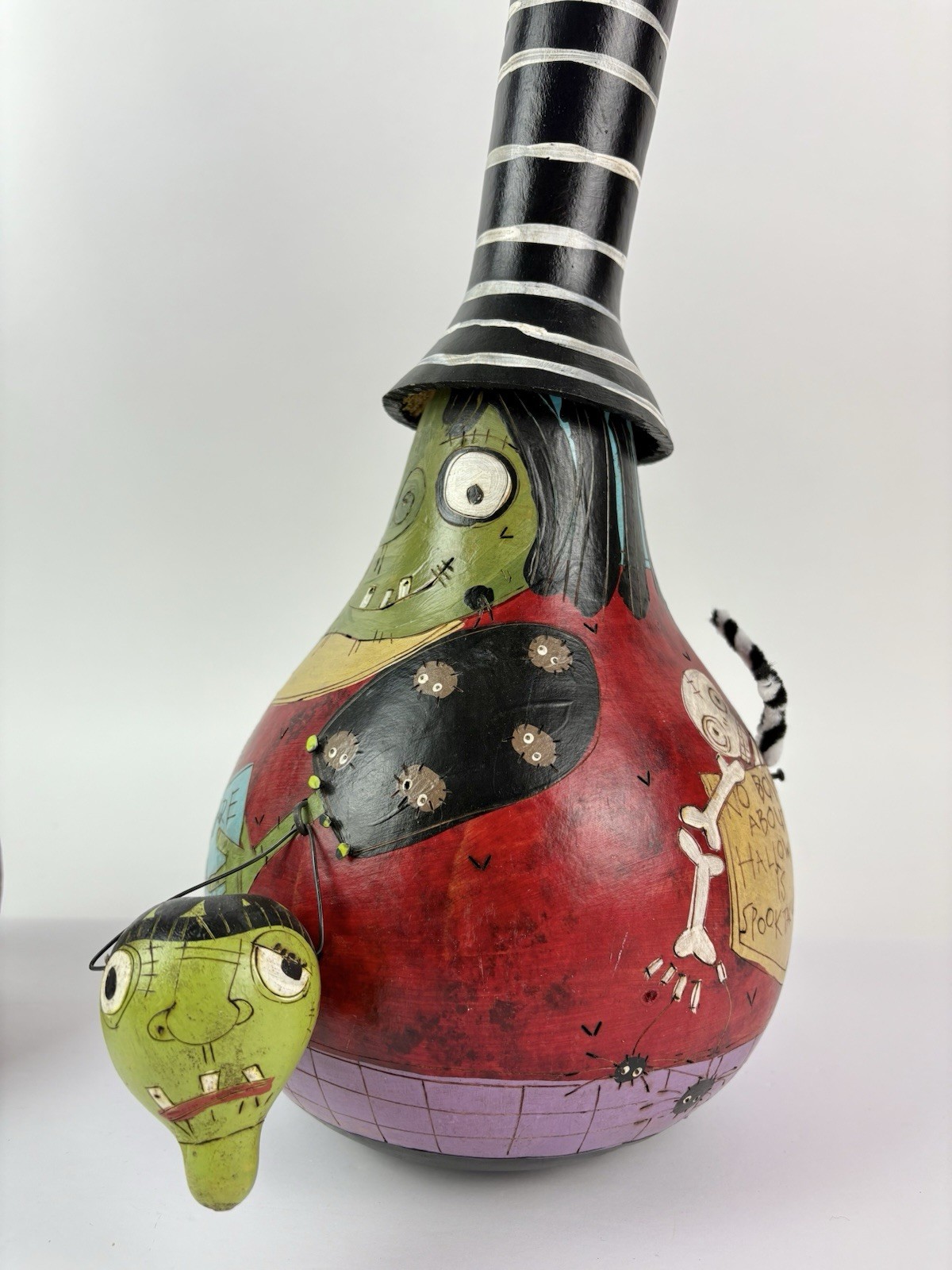2 Jeni Gochnour Halloween Folk Art Painted Gourd Pumpkin Art Funky Witch 35 22