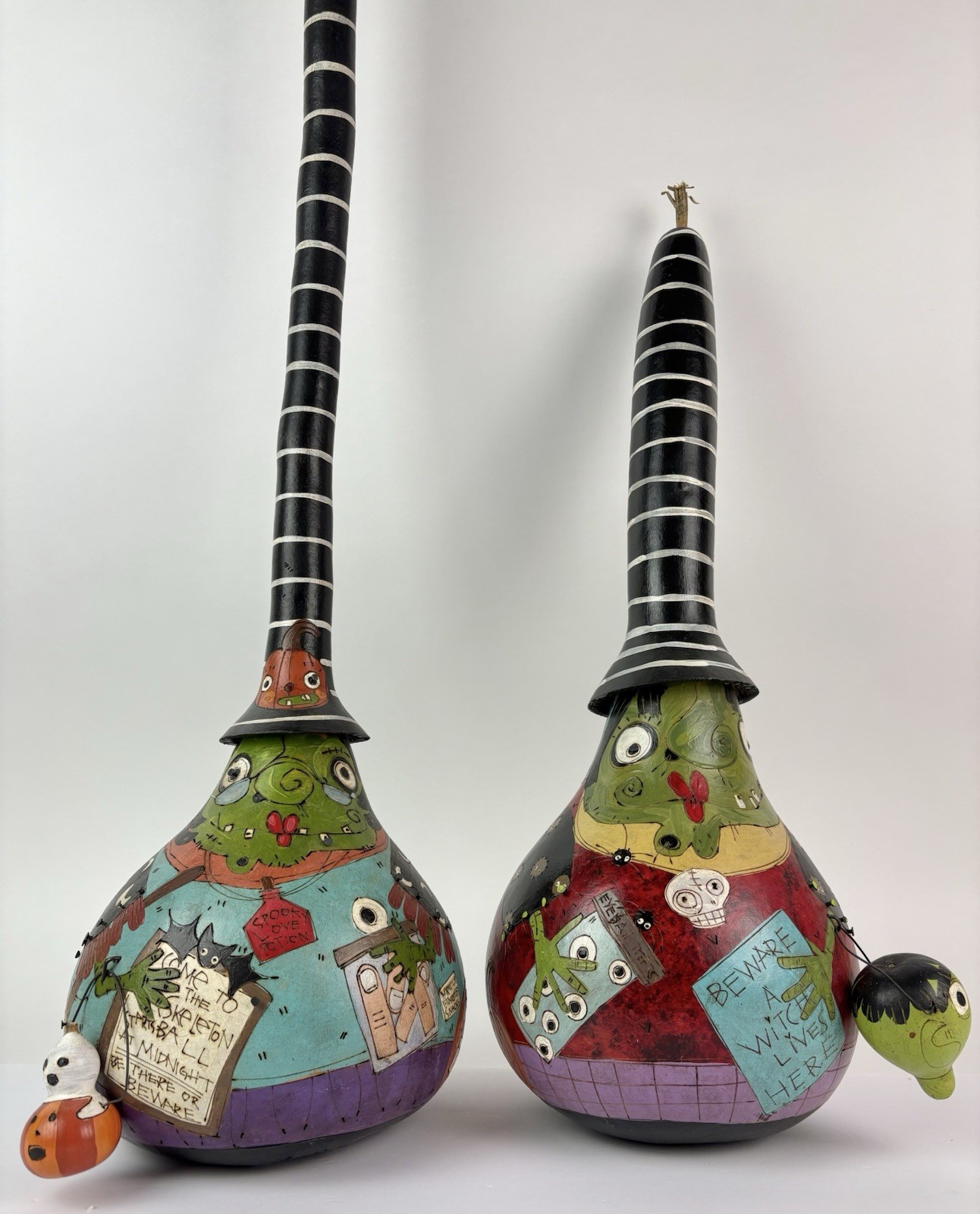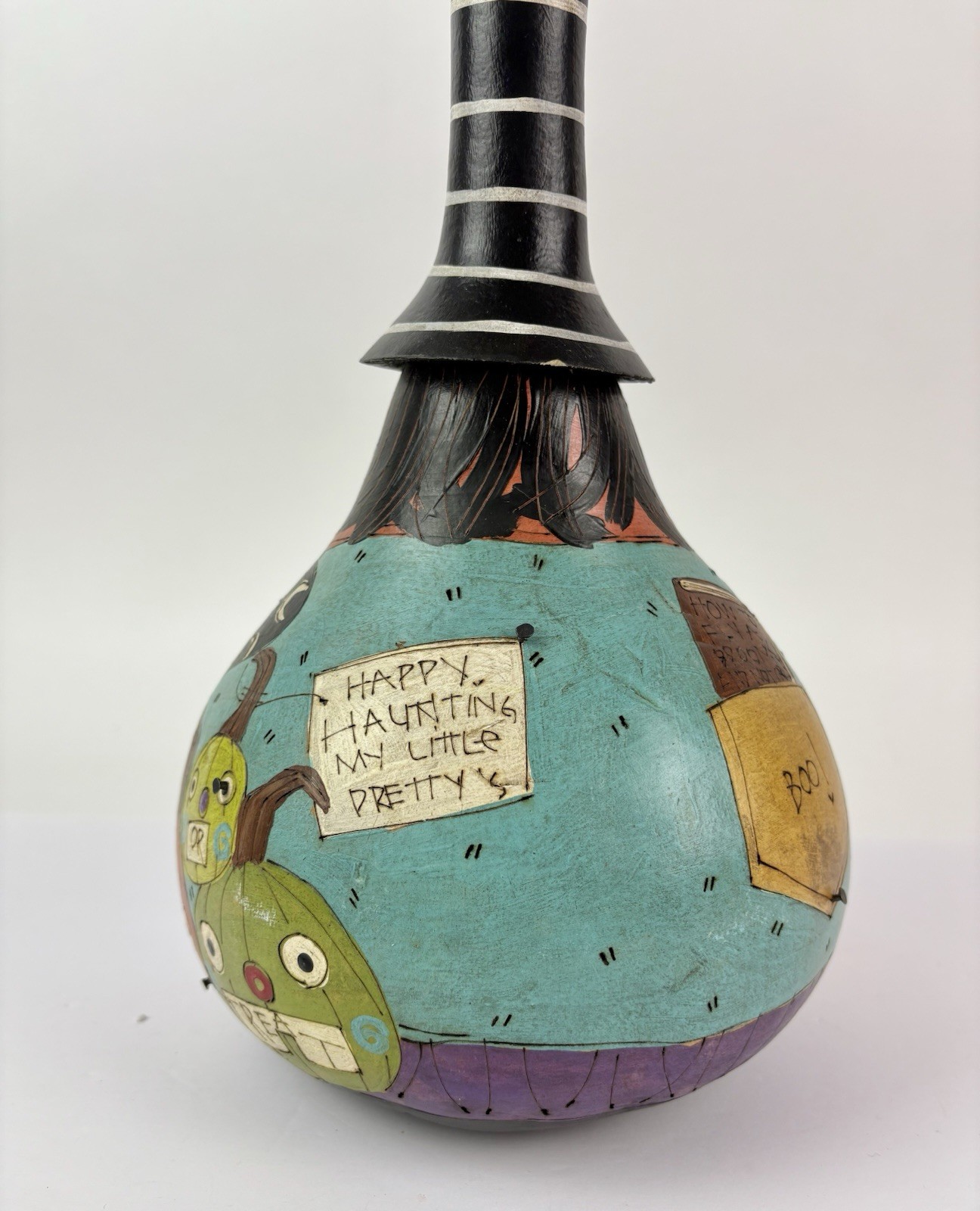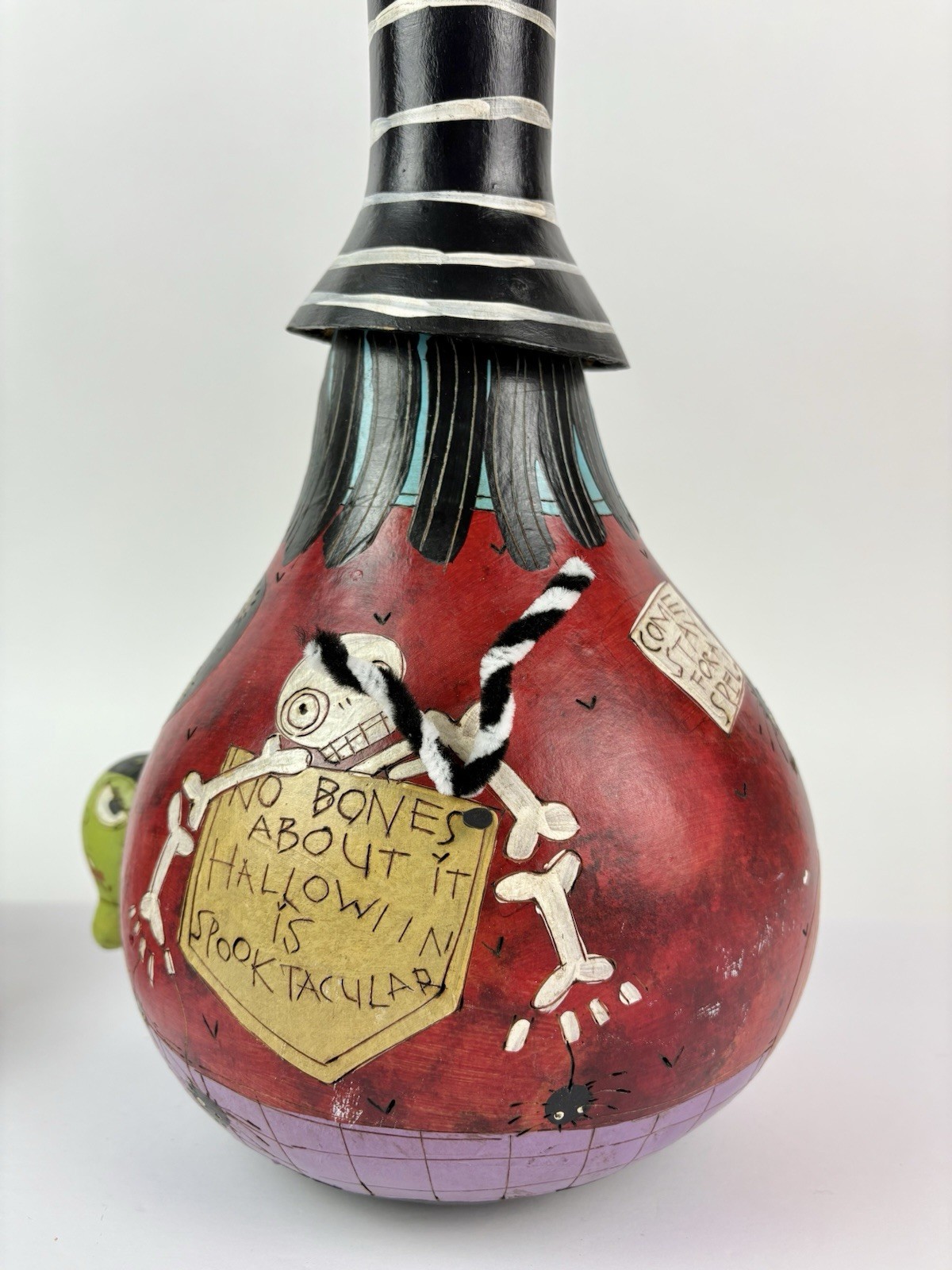 2 Jeni Gochnour Halloween Folk Art Painted Gourd Pumpkin Art Funky Witch 35 22