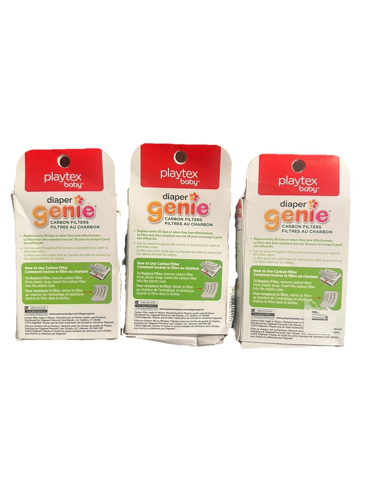 Diaper Genie 4 Pack Carbon Filters Odor Absorbent Tray Refill Playtex Lot of 3