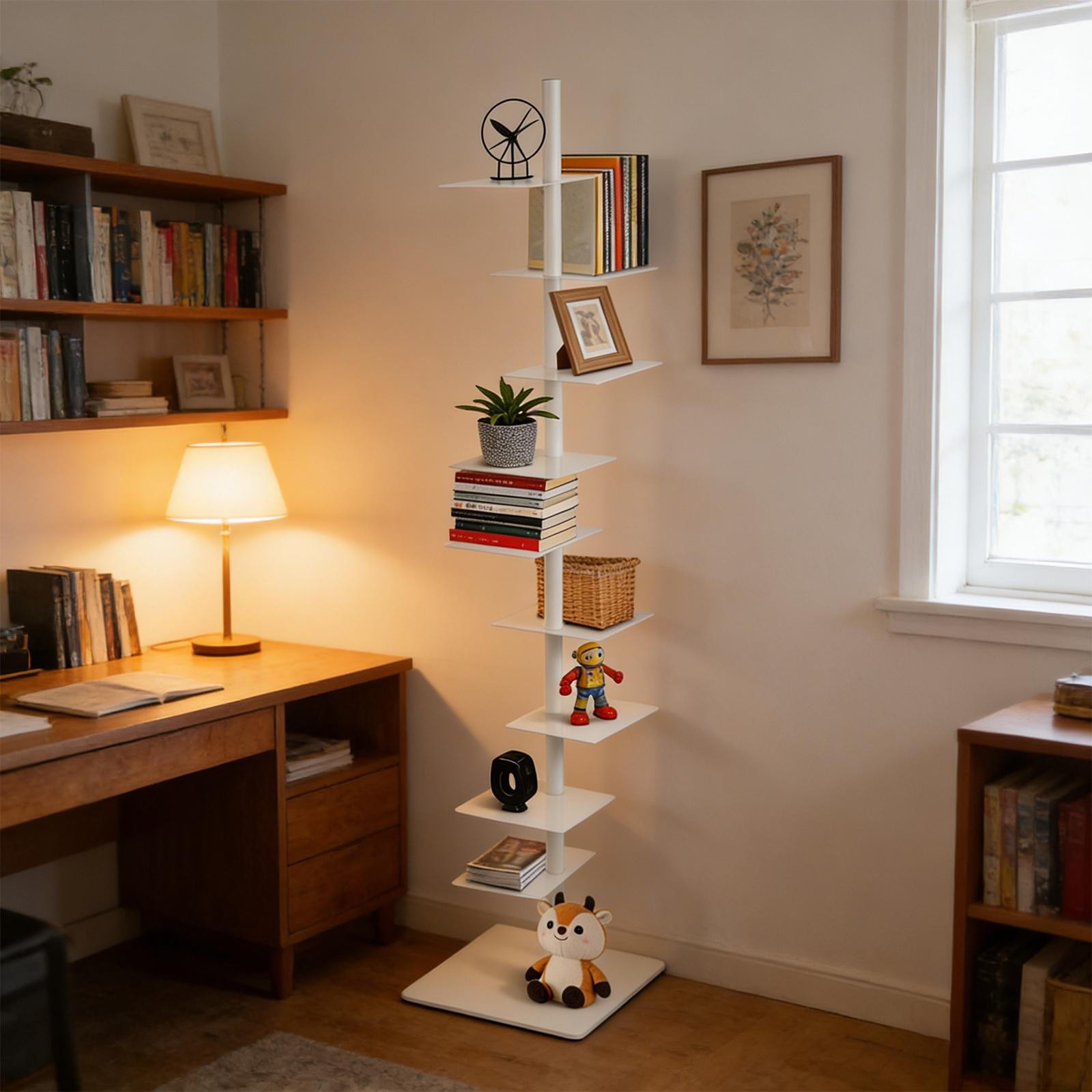 9-Tier Metal Bookcase Book Organizer Rotating Spine Bookshelf Book Tower