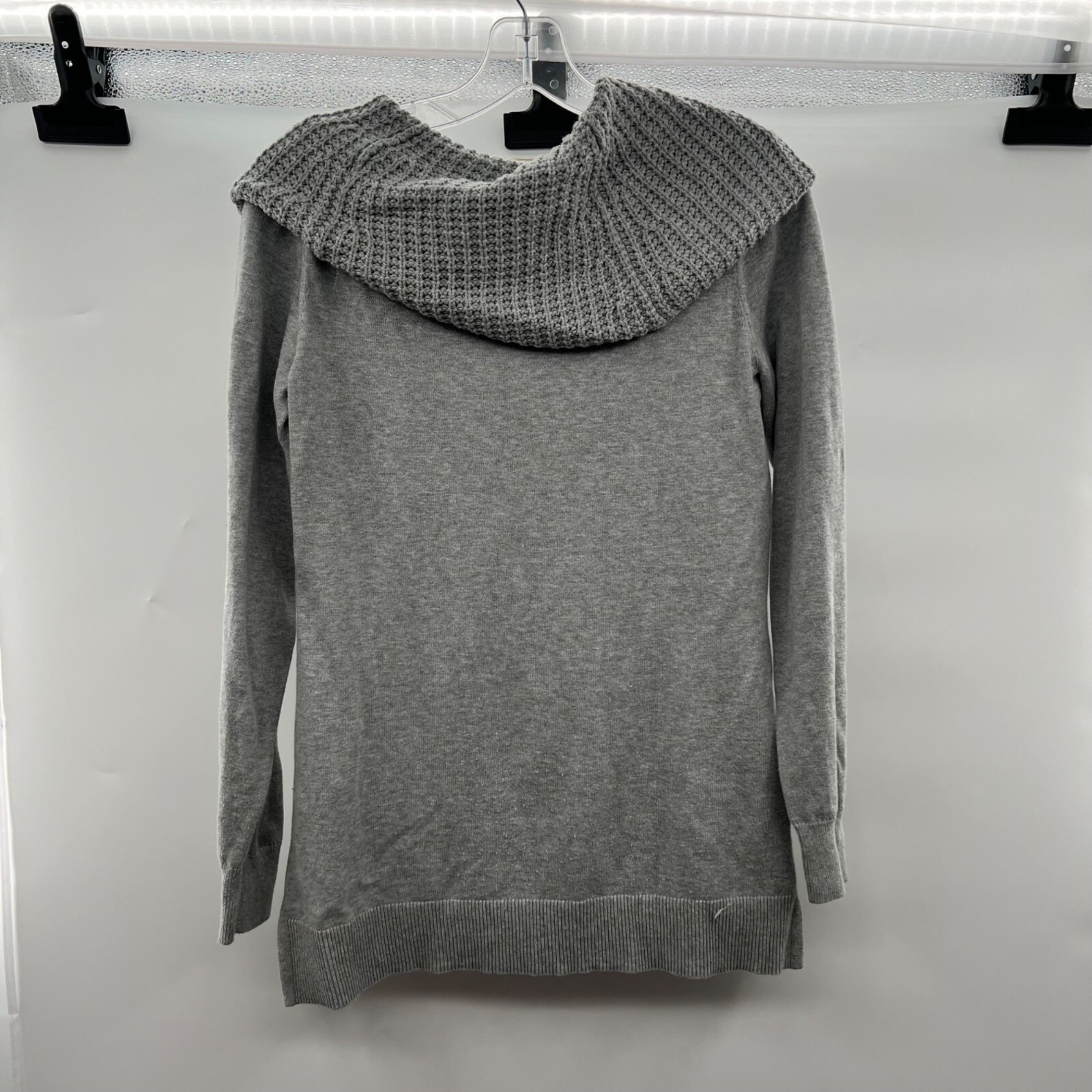 как выглядит Michael Kors Womens Off Shoulder Cowl Neck Sweater Gray Size Small фото