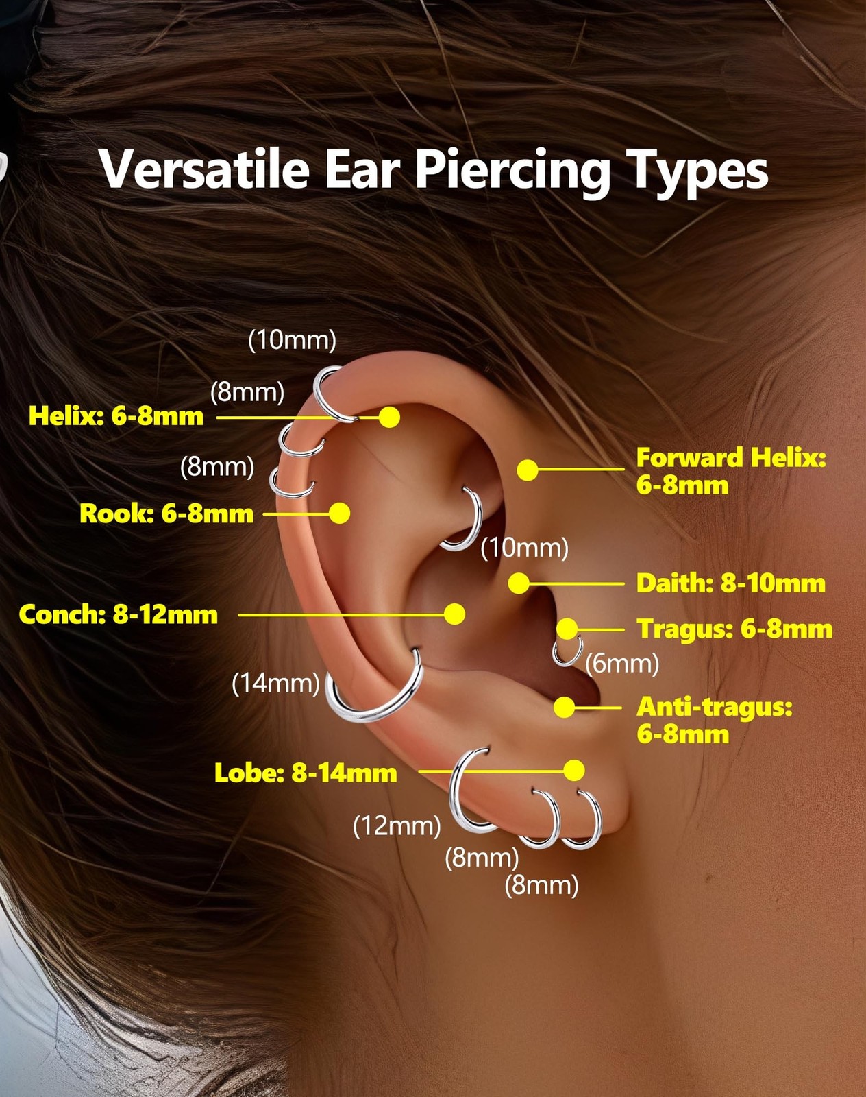 как выглядит 5 Pairs Small Huggie Hoop Earrings for Women, Stainless Steel Lightweight Hyp... фото