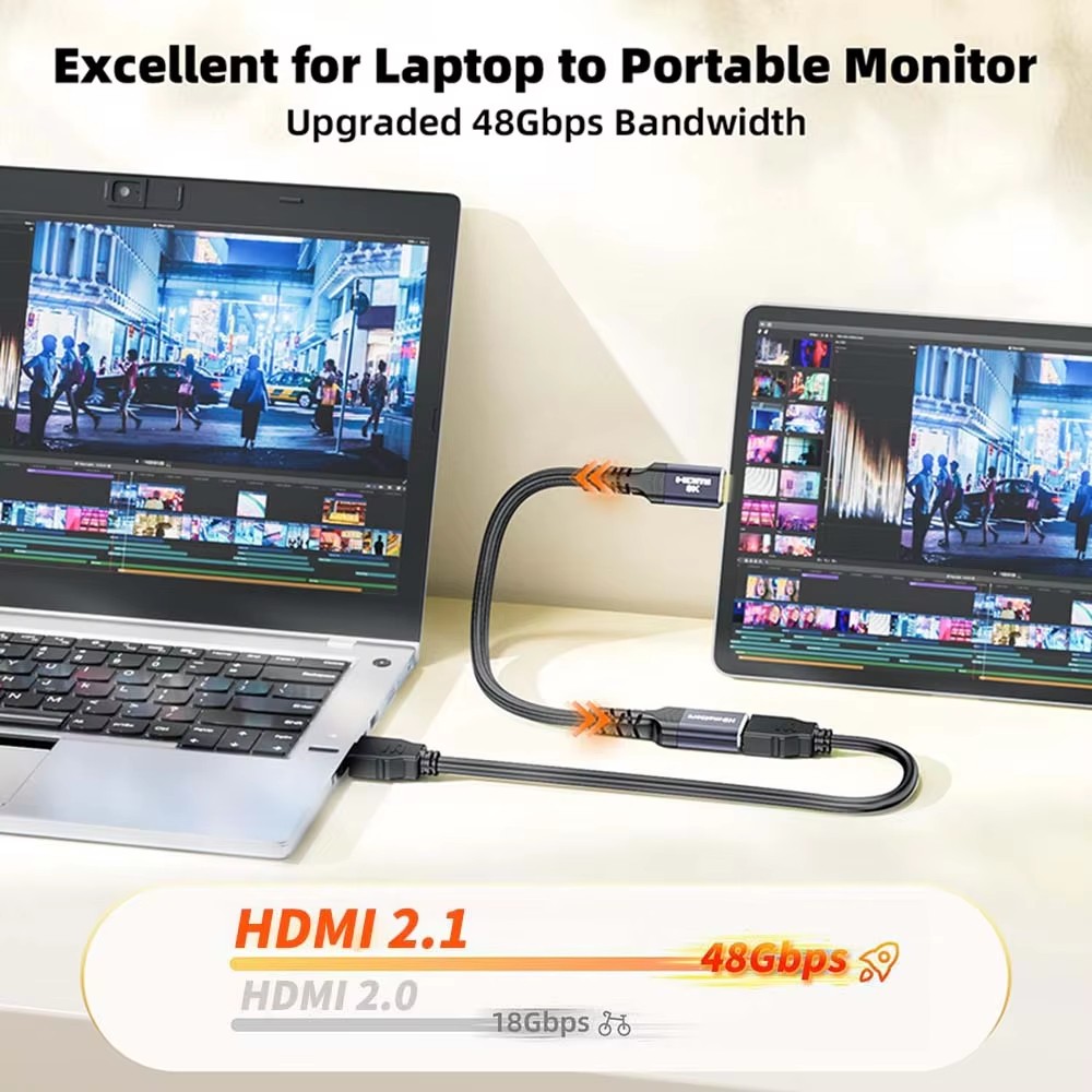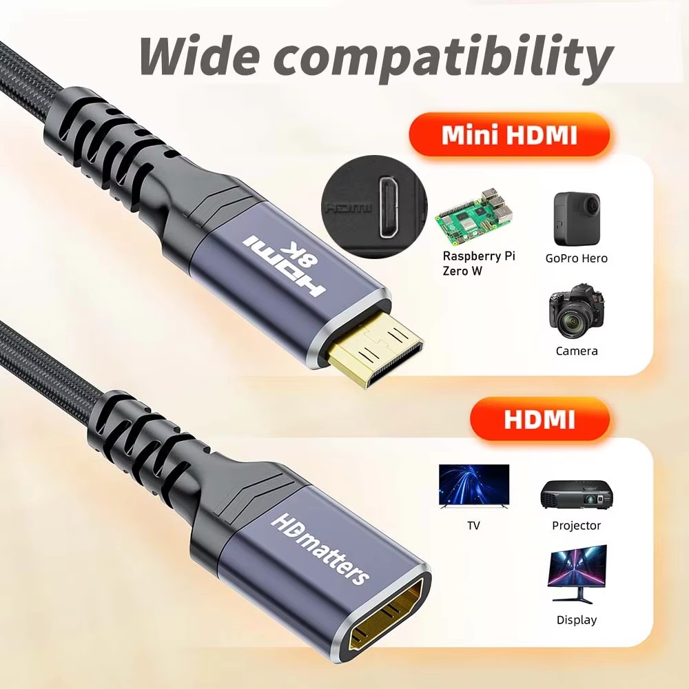 Mini HDMI Male to HDMI Female Bi-direction Adapter Short Cable 4K 120Hz 0.25M