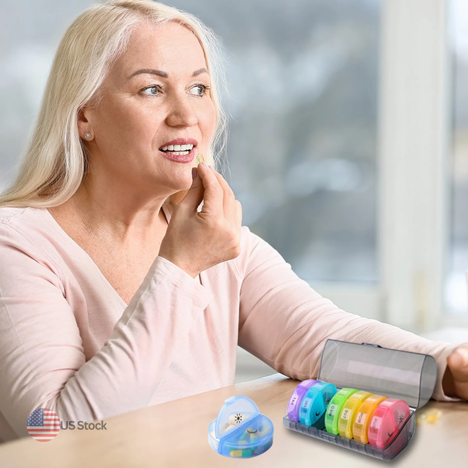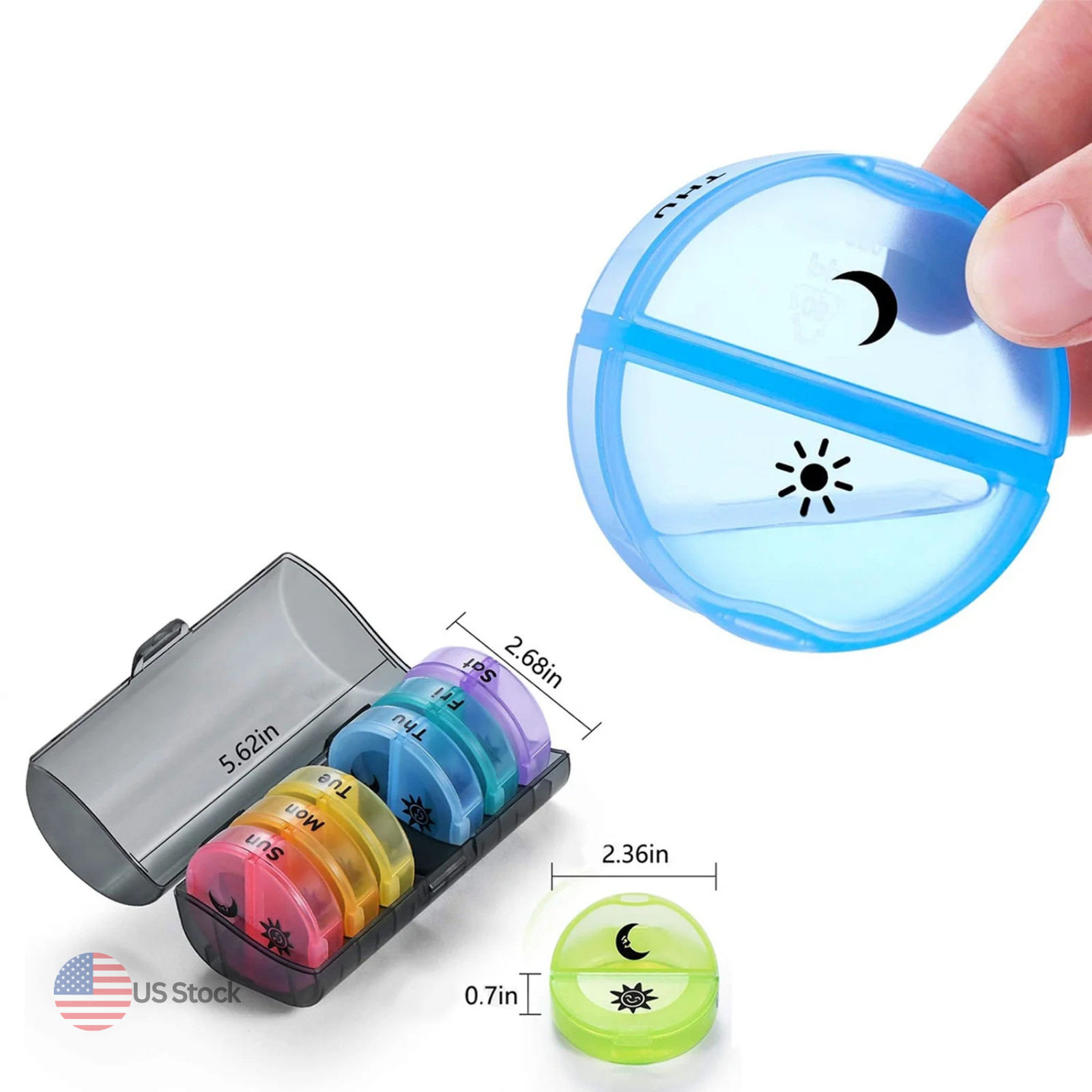 2 Times A Day AM PM Weekly Pill Organizer with Black Travel Case Large 7 Day