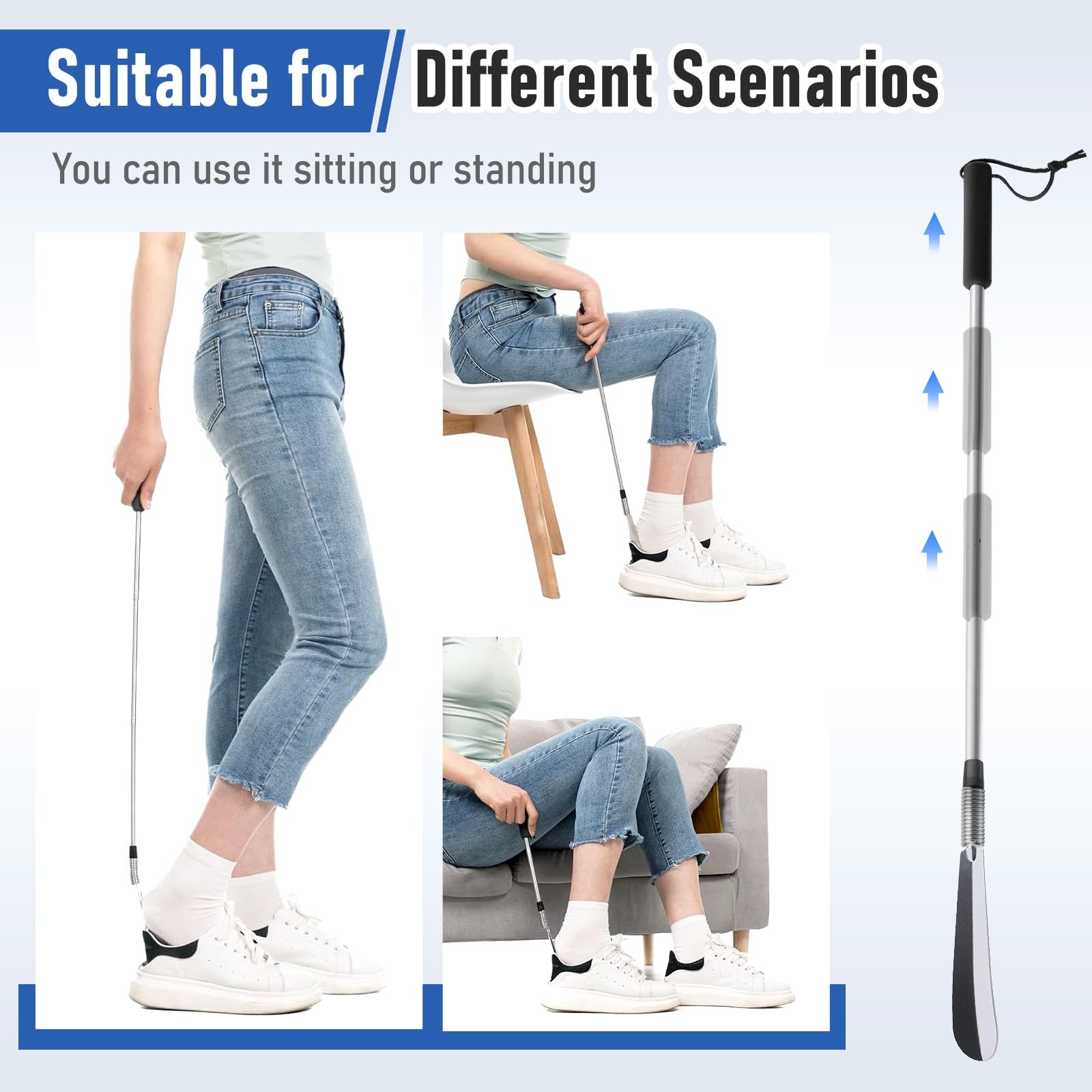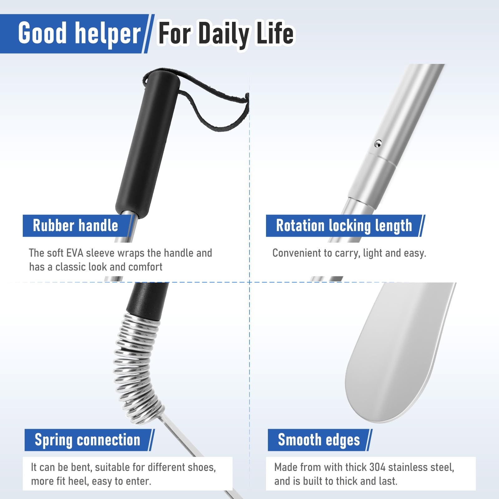 Fanwer Extendable Shoe Horn Long Handle for 2 Count Pack of 1 , Silver