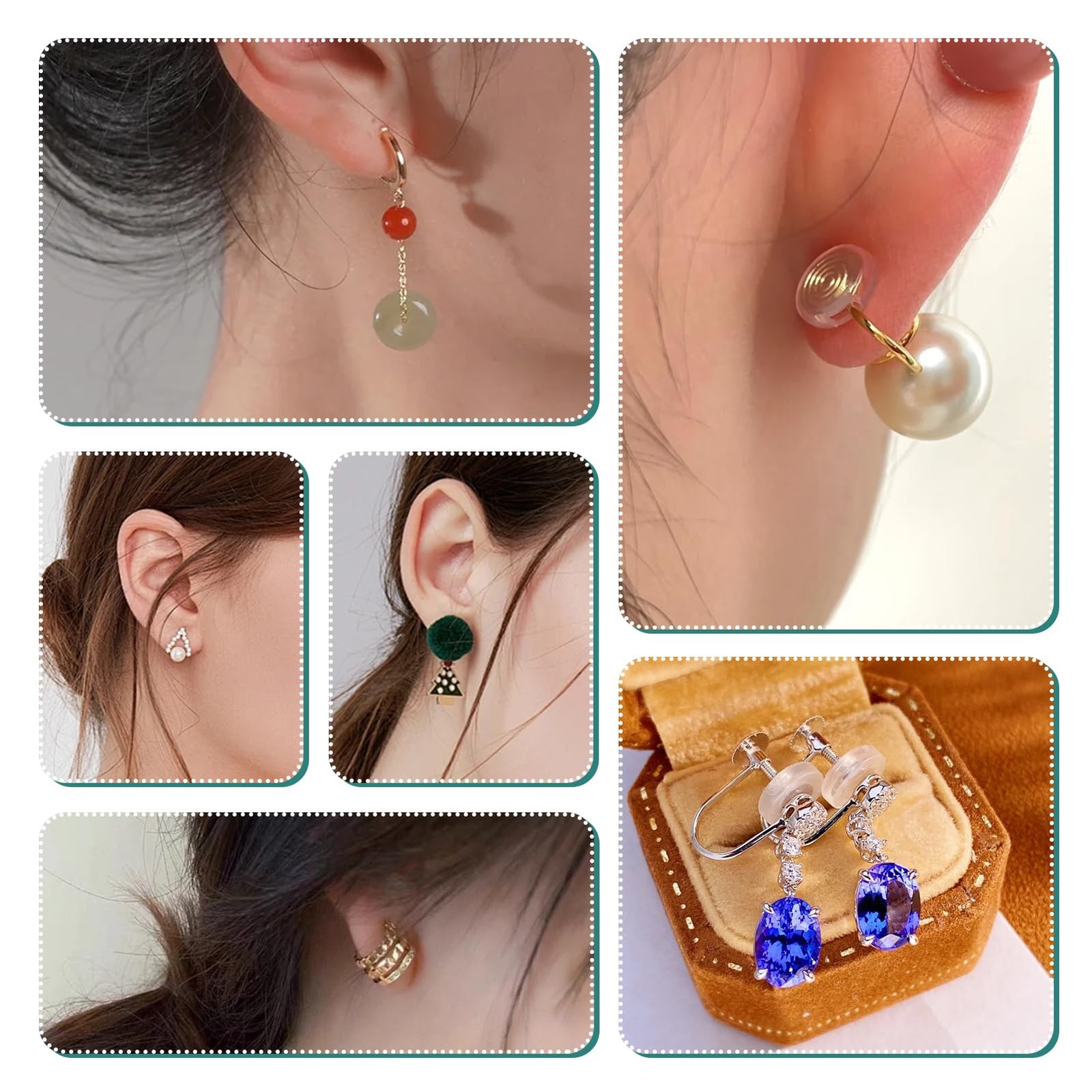 120 Pieces 4 Sizes Earring Back Pads Clear Silicone Comfort Earring Cushions for