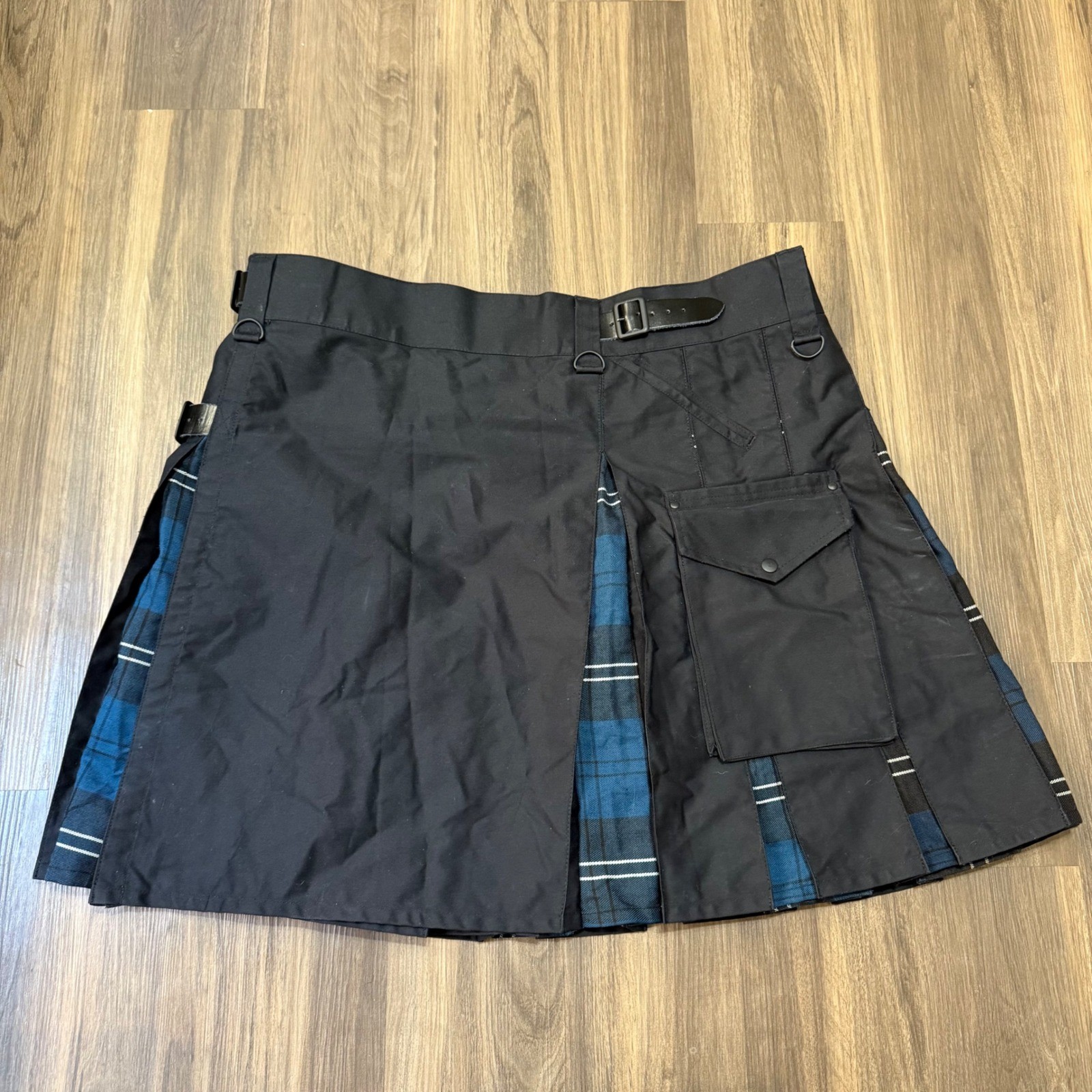 Scottish Highland Men's Utility Kilt Black/Ramsay Blue Tartan 48 Goth Hybrid