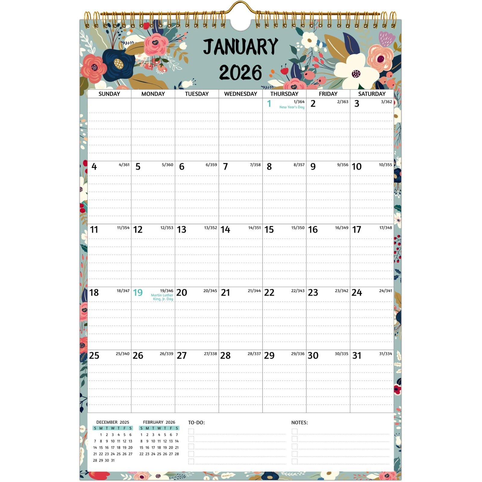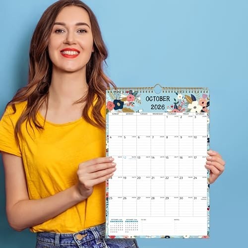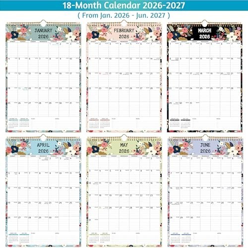 2026-2027 Wall Calendar - 18 Months, Large Blocks, Thick Paper, Holidays Notes