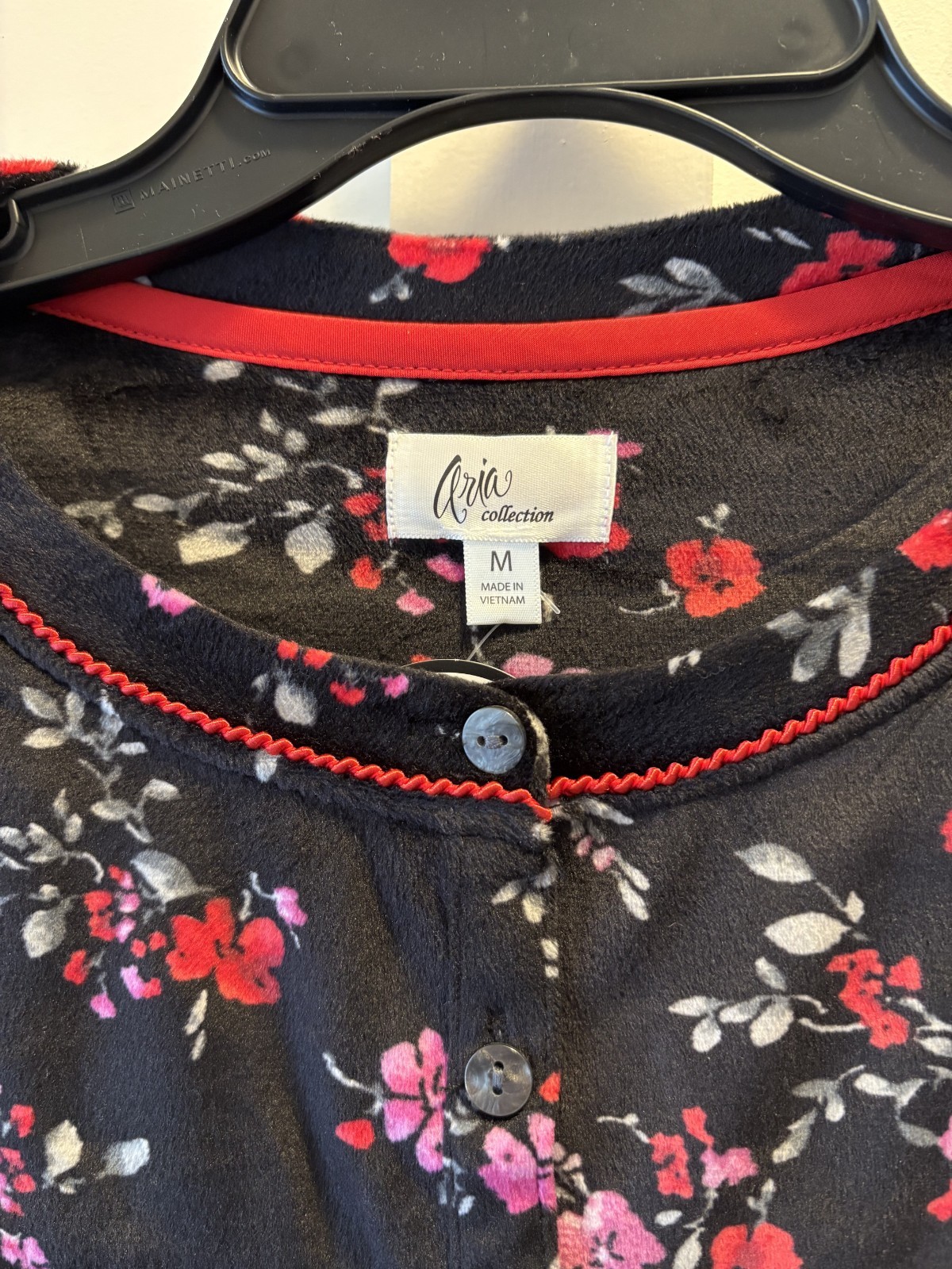 как выглядит Aria Womens Velour Nightgown Long Sleeve Size M Black Floral Print New w/ Tags фото