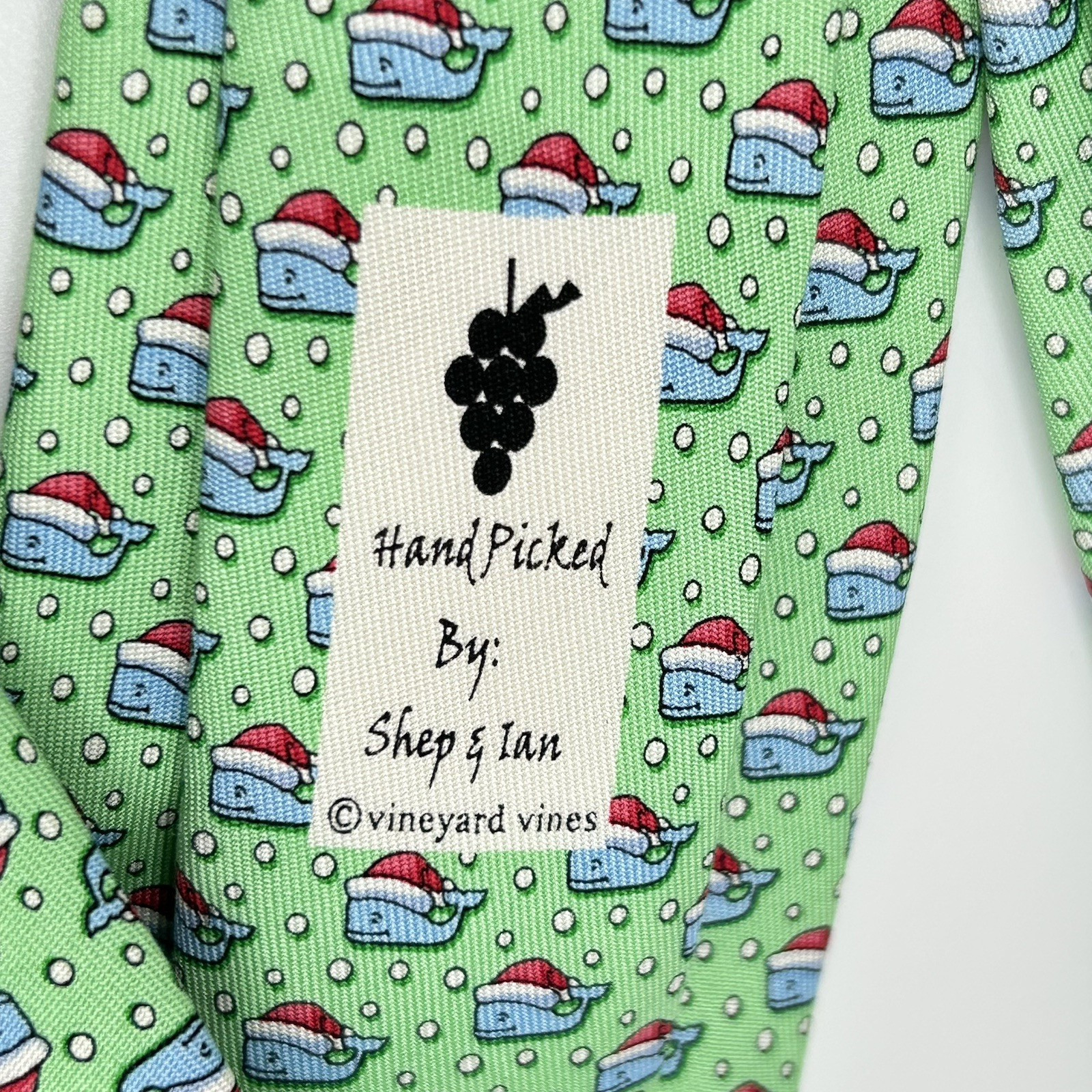 Vineyard Vines Men's Silk Tie Christmas Green Santa Hat Whale Funny 3.5 x 60