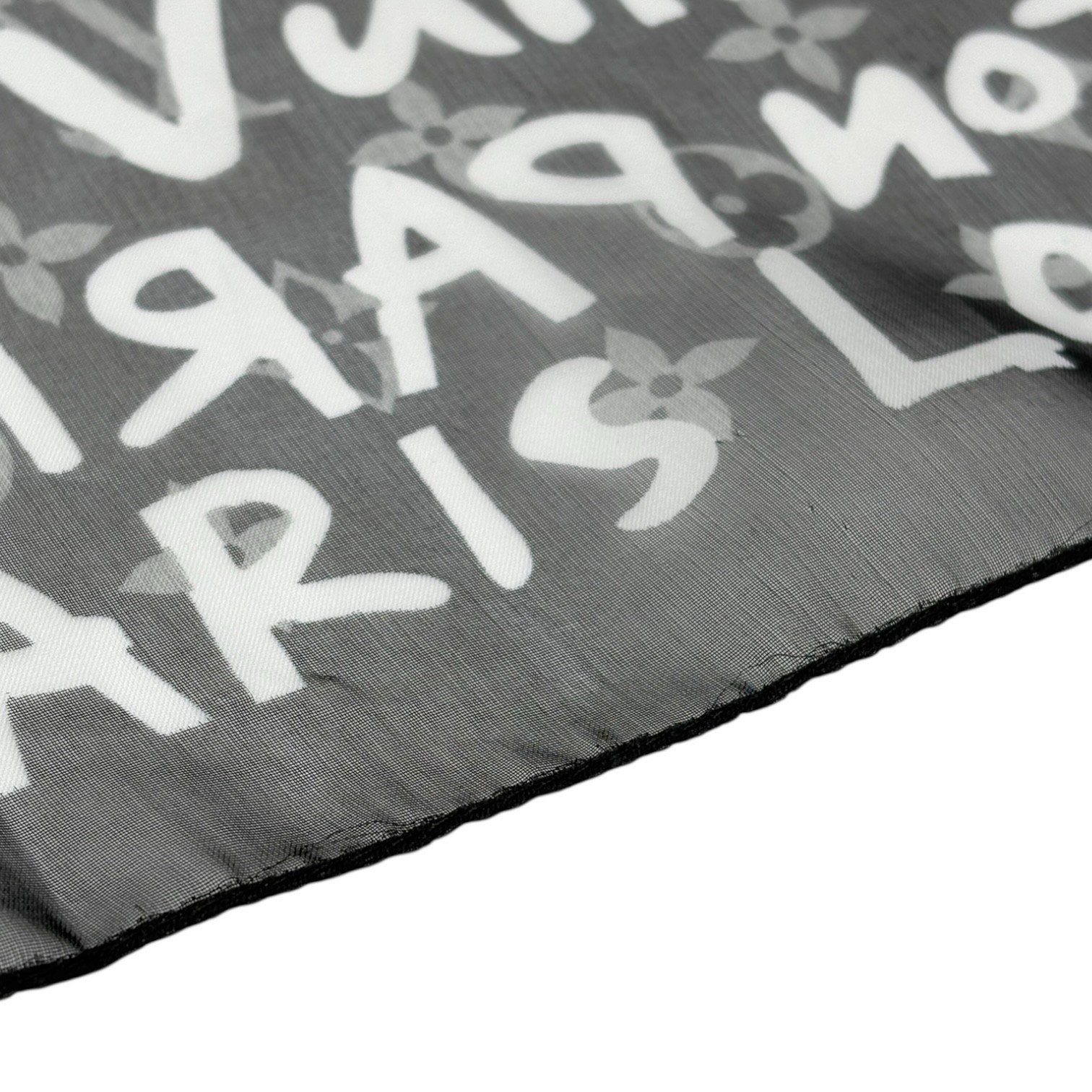 LOUIS VUITTON Monogram Graffiti Silk Scarf Wrap Stephen Sprouse Black White