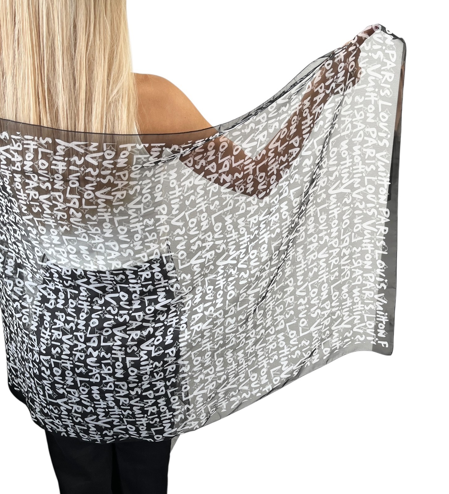 как выглядит LOUIS VUITTON Monogram Graffiti Silk Scarf Wrap Stephen Sprouse Black White фото