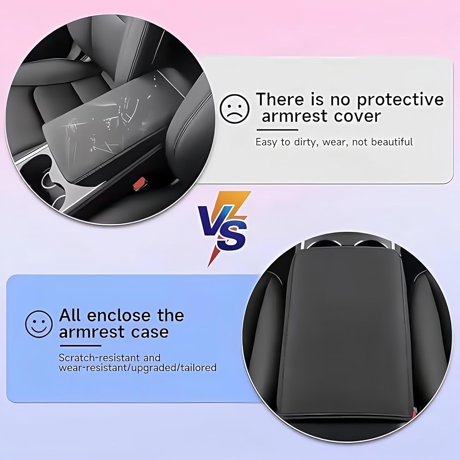Armrest Cover for Tesla Model Y 3, Soft Leather Center Console Lid