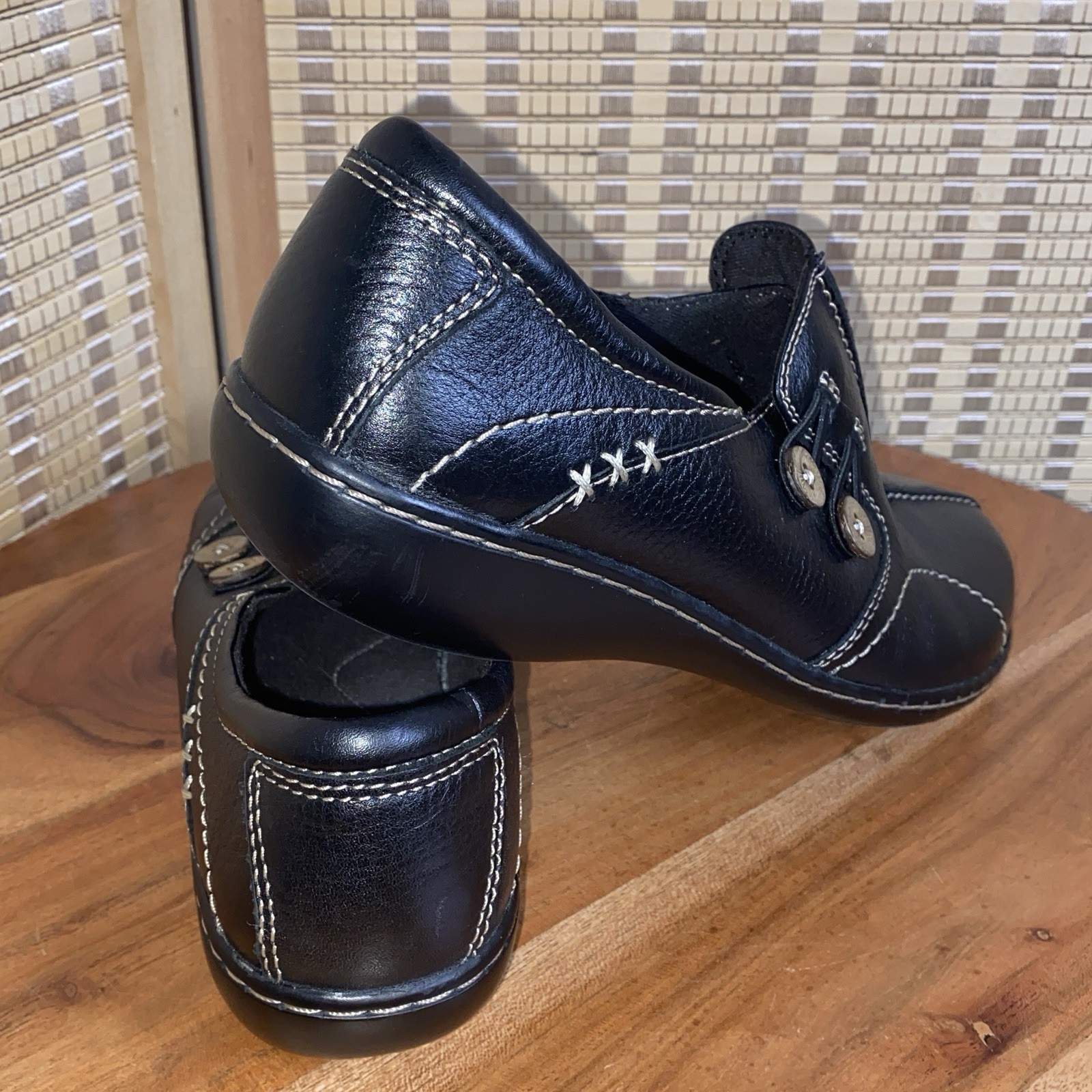 как выглядит Clarks Ashland Lane Q Black Leather Slip On Loafer Size 8W фото