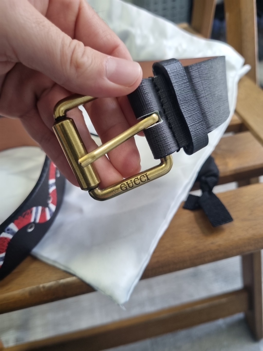 как выглядит Gucci Leather belt cm Black Snake Logo Gucci Leather 42/105 Great Condition фото
