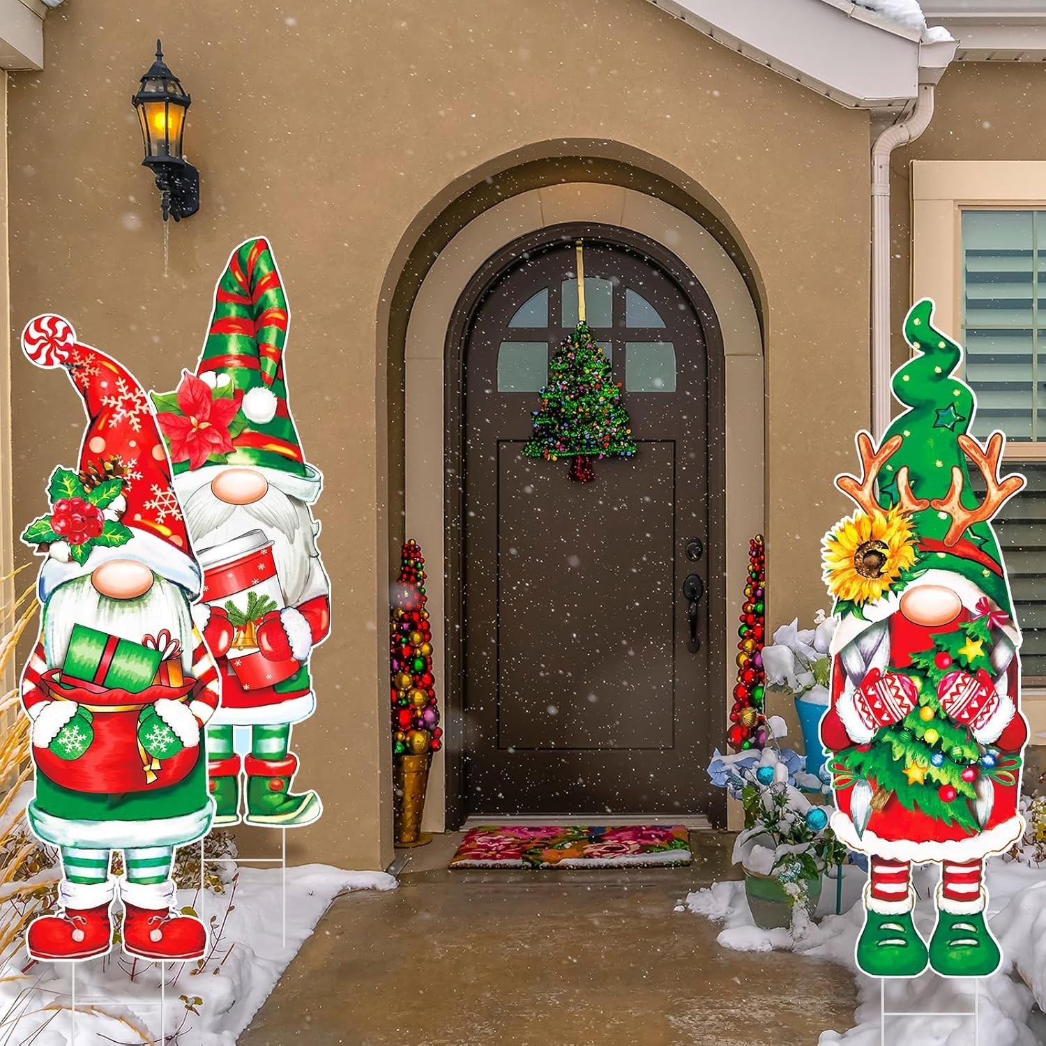 Festive 3-Pcs Gnome Lawn Signs - Sturdy 32 x 10'' Outdoor Christmas Decorations