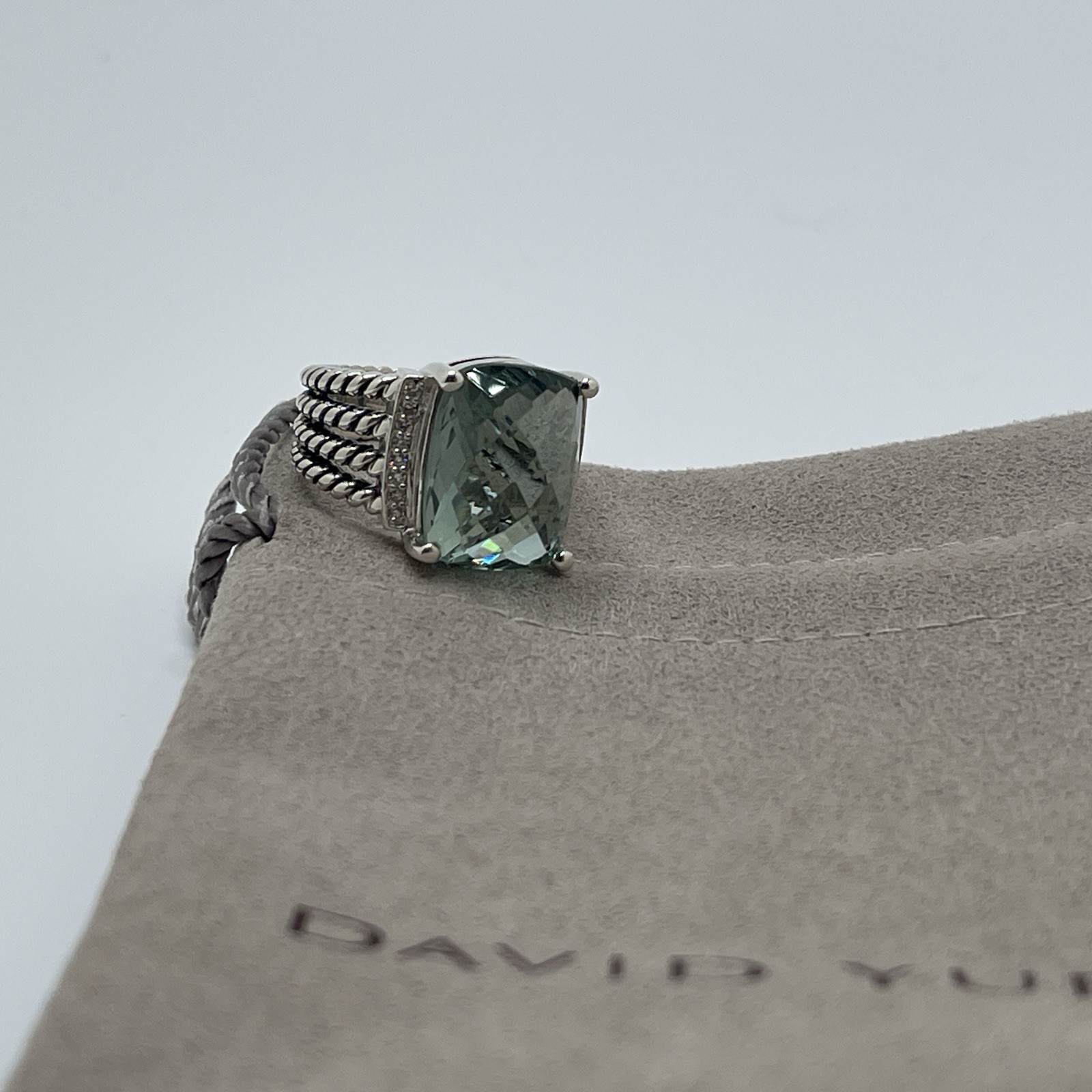 как выглядит David Yurman Sterling Silver Wheaton Ring 16x12mm Prasiolite and Diamonds Size 7 фото