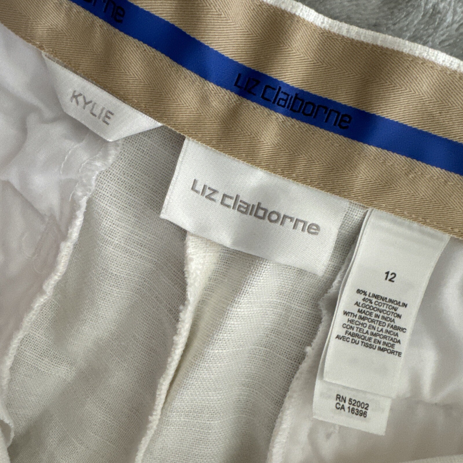 Women s Linen White Pants High-rise Pleated Sz 12 Vintage Liz Claiborne Kylie