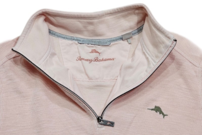 как выглядит Tommy Bahama Tobago Bay Half Zip Sweatshirt Men Medium Pink Malibu Peach Preppy фото
