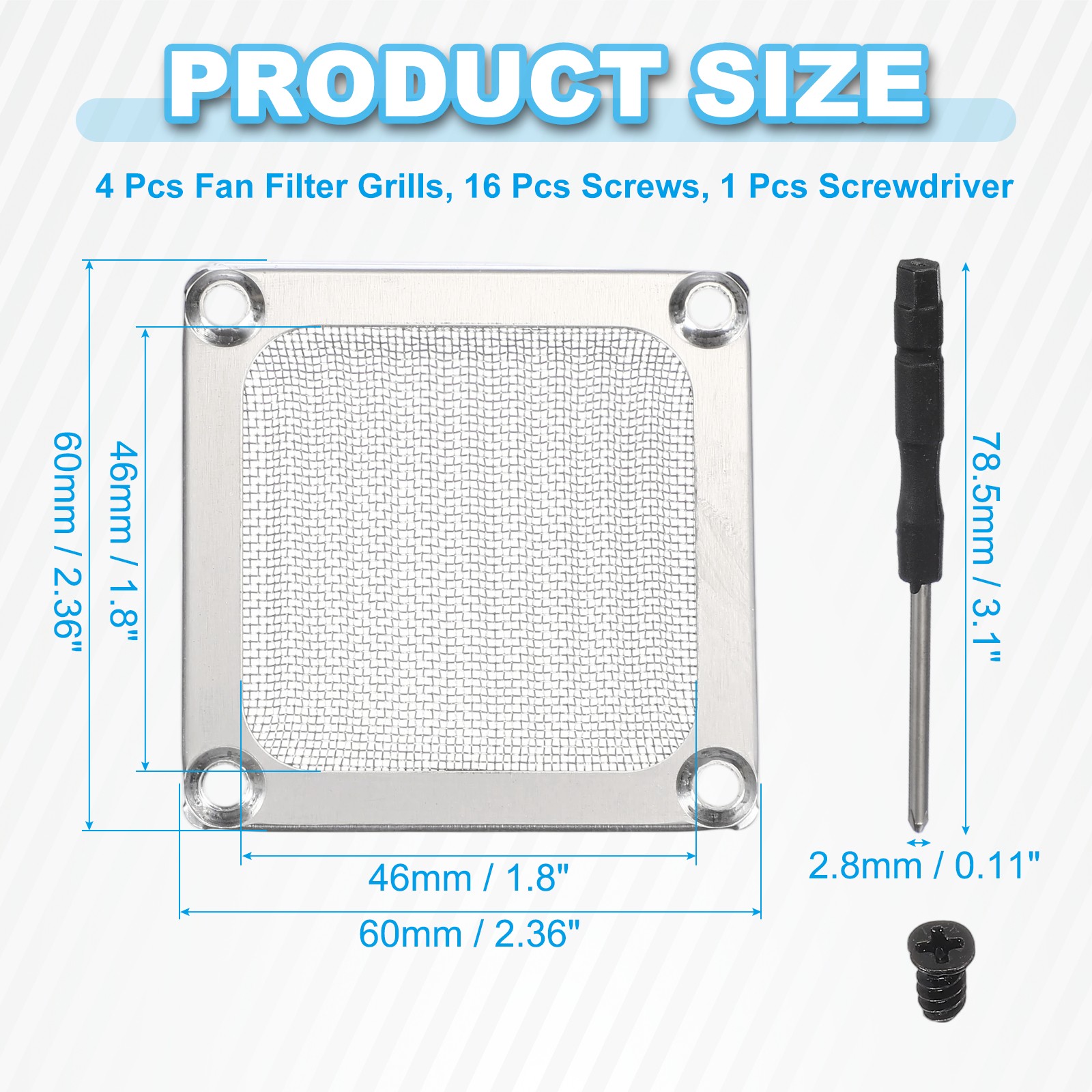 4Pcs 60mm Fan Filter Grills Aluminum Frame Mesh with Accessories, Silver