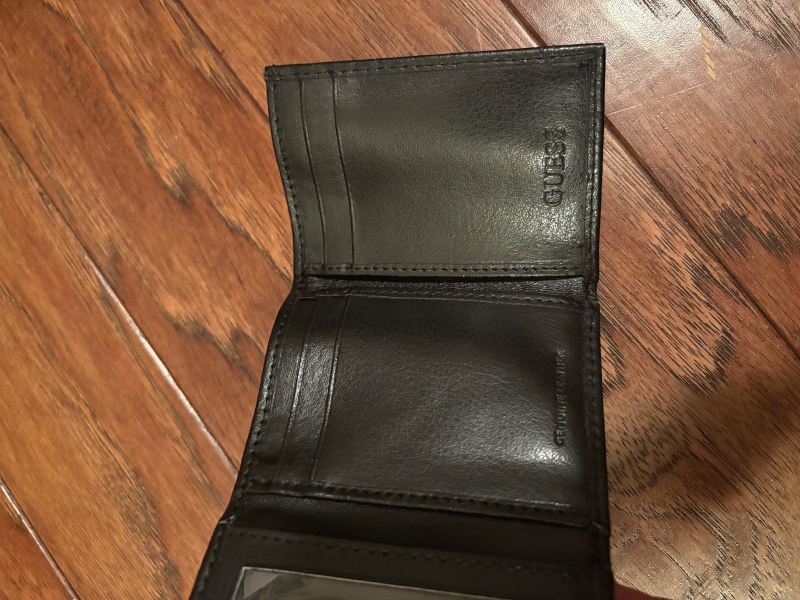 как выглядит GUESS Trifold Leather Wallet Black 3.75x2.75 New without box фото