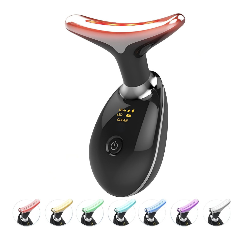 Facial Massager Red-Light-Therapy-for-Face and Neck with 7 Color Black