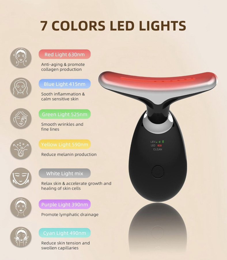 как выглядит Facial Massager Red-Light-Therapy-for-Face and Neck with 7 Color Black фото