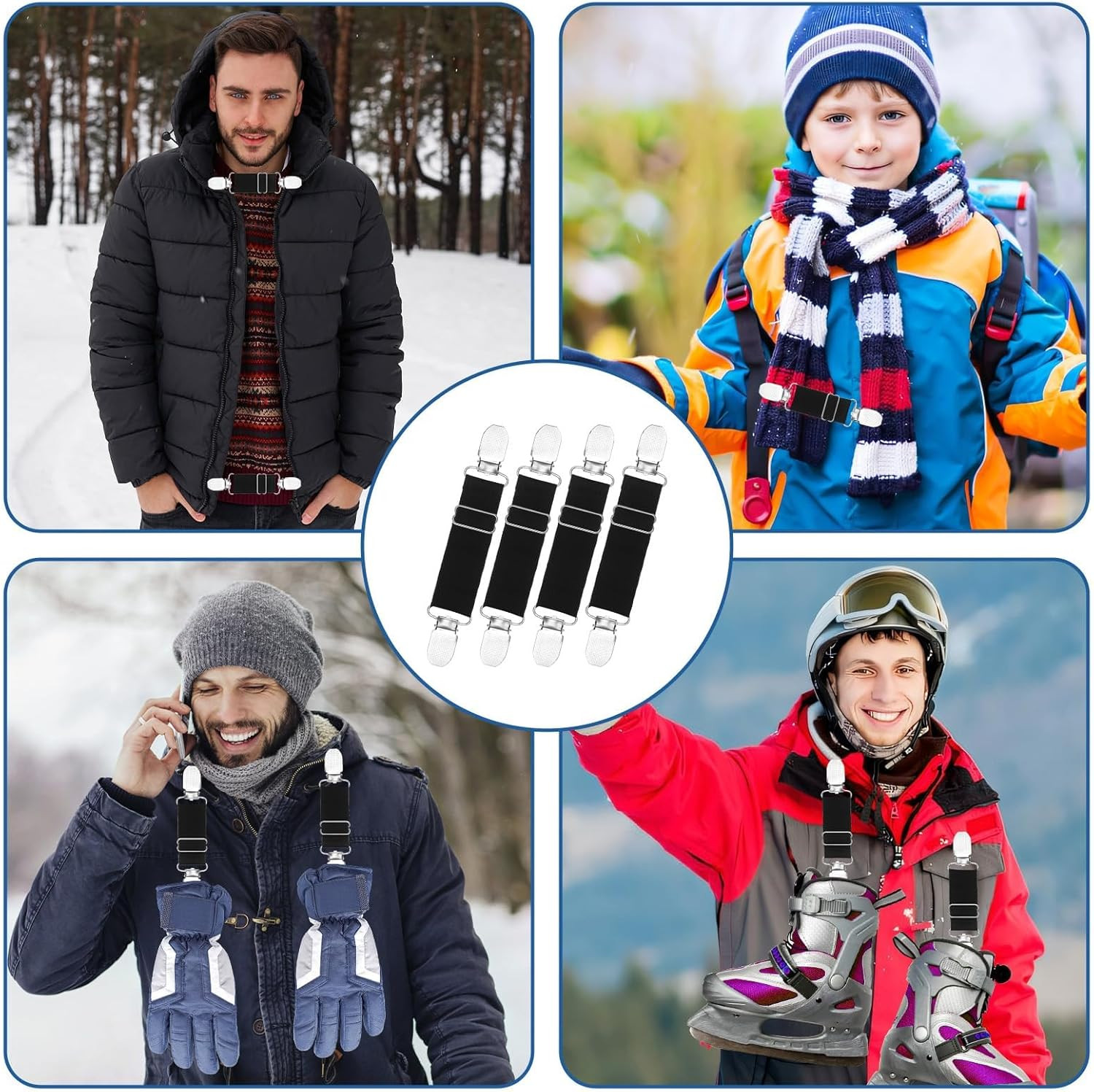 4PCS Adjustable Elastic Mitten Clip Glove Straps for Kid Adult Stainless Steel