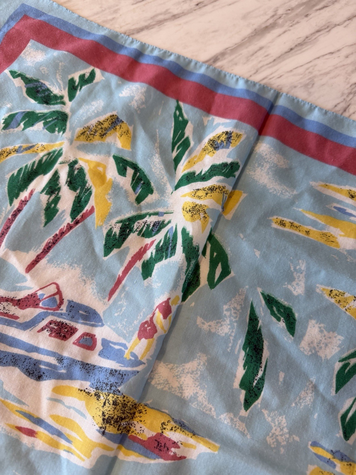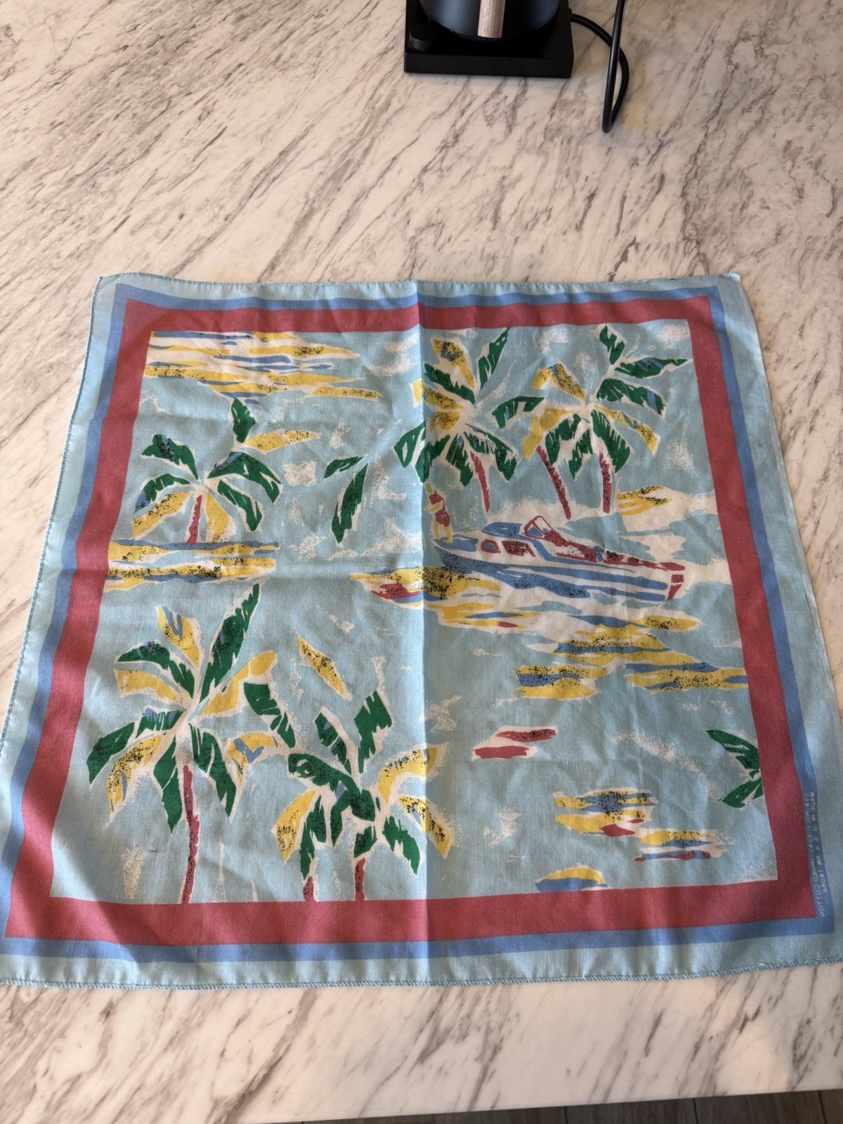 Vintage 1950s Midcentury Tropical Cotton Handkerchief Scarf, Tiki 21