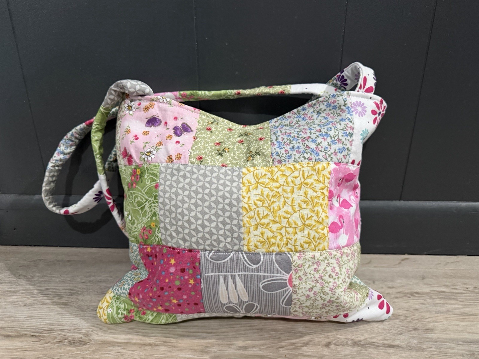 handmade patchwork quilted tote bag