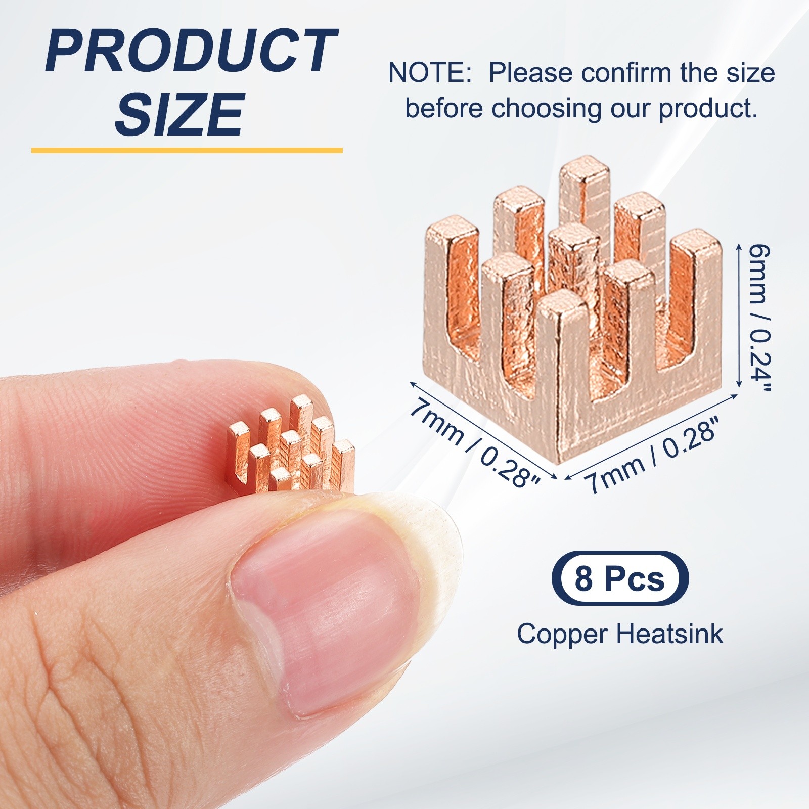 8 Pcs Copper Heatsink 7x7x6mm, Heat Sink Cooler Radiator for Raspberry Pi