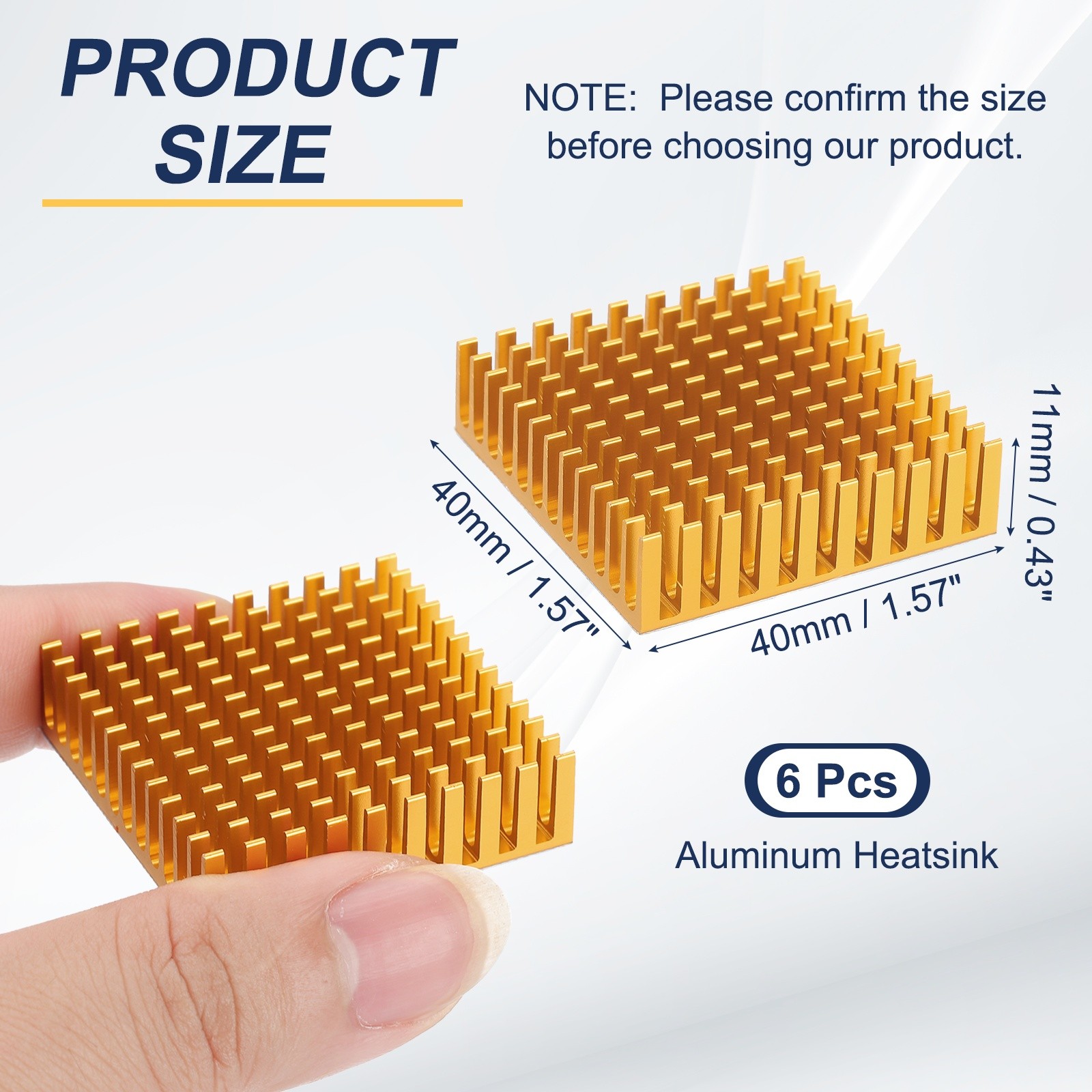 6 Pcs Heatsink 40x40x11mm Aluminum Heat Sink with Thermal Blue Sticker Gold