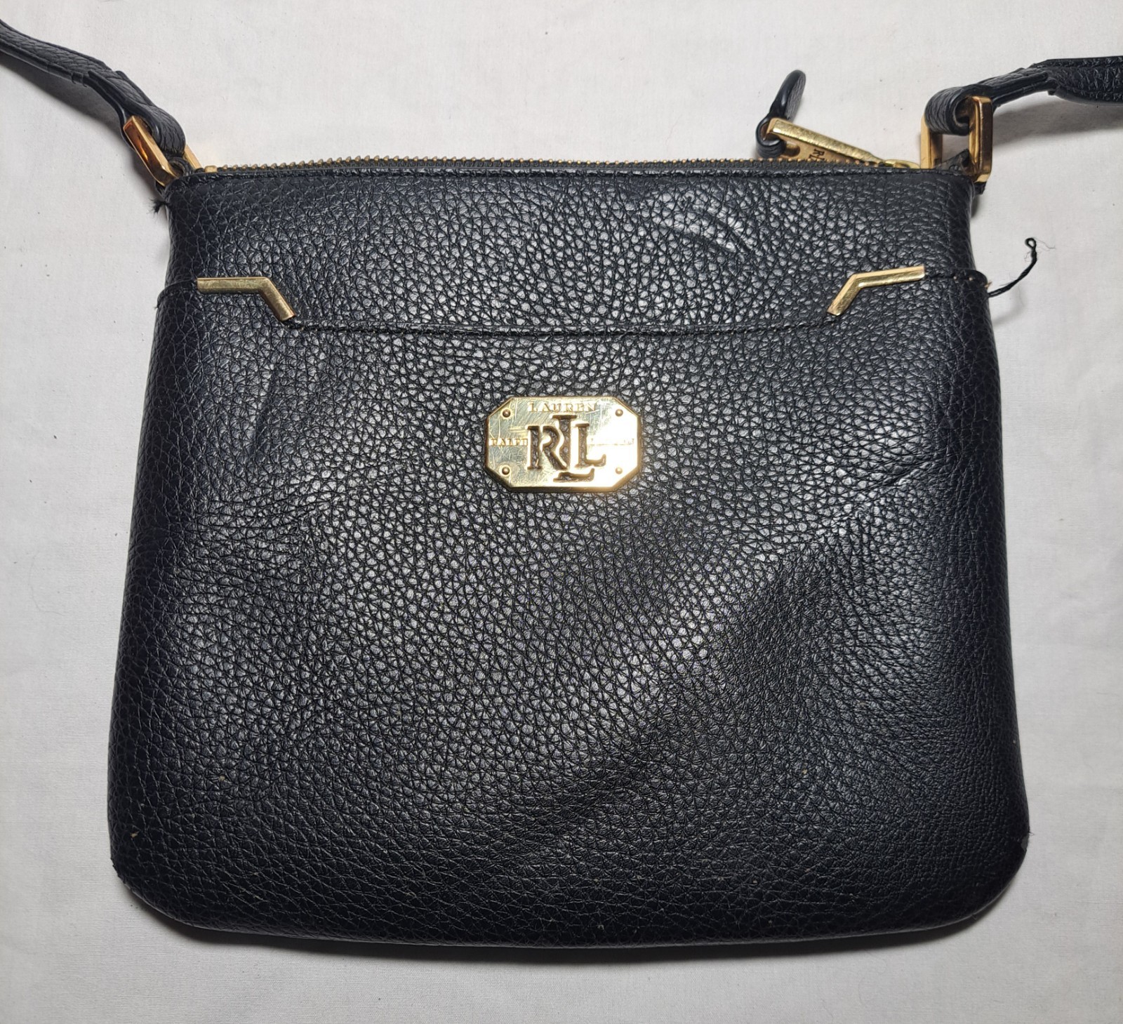 как выглядит Vintage Polo Ralph Lauren Cross Body Purse Black Textured With Belt Strap Classy фото