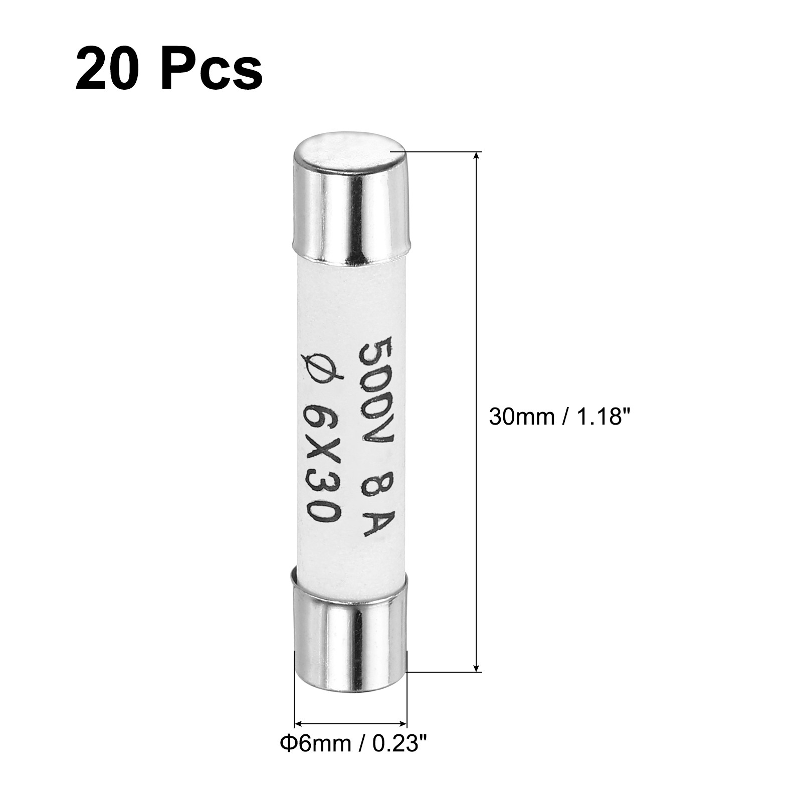 Ceramic Cartridge Fuses 8A 500V 6x30mm Fast Blow for Energy Saving Lamp 20pcs