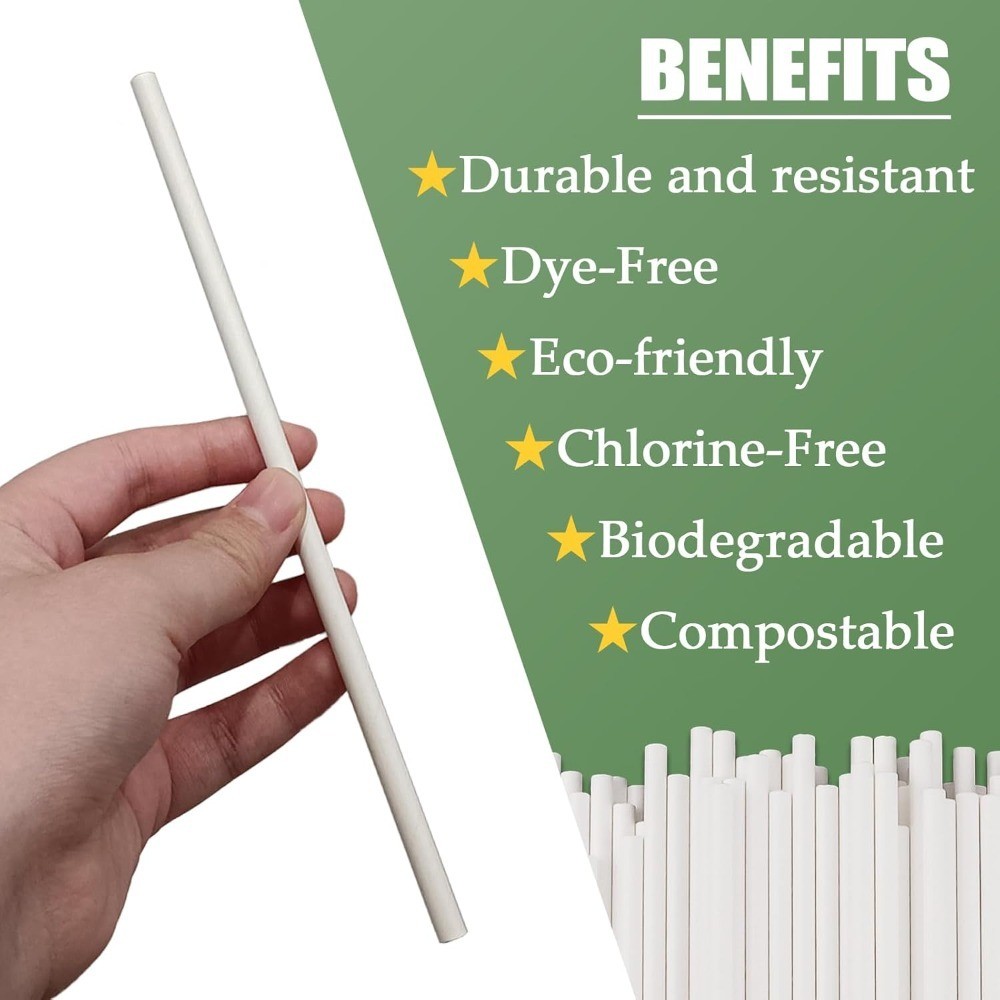 White Biodegradable Paper Straws Eco-Friendly Bulk Pack of 100 for Party