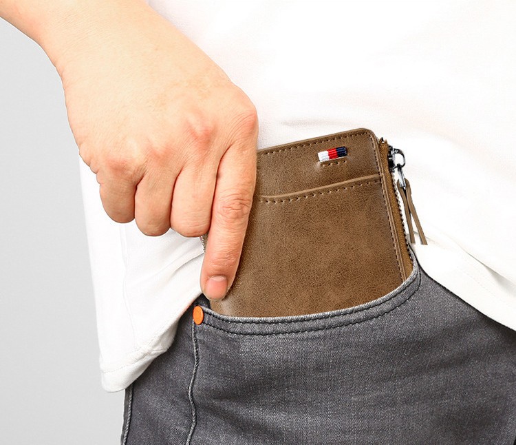 Men Wallet Holder Blocking Zipper Pocket RFID Protected Brown color