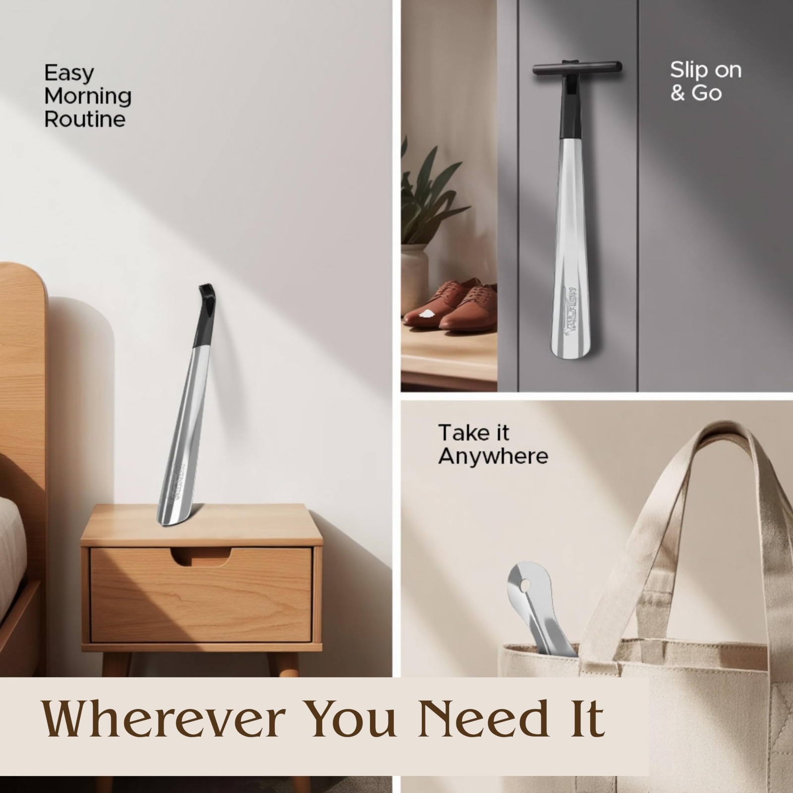 FALKON Shoe Horn Long Handle for Seniors - Includes Two 16.5 Silver