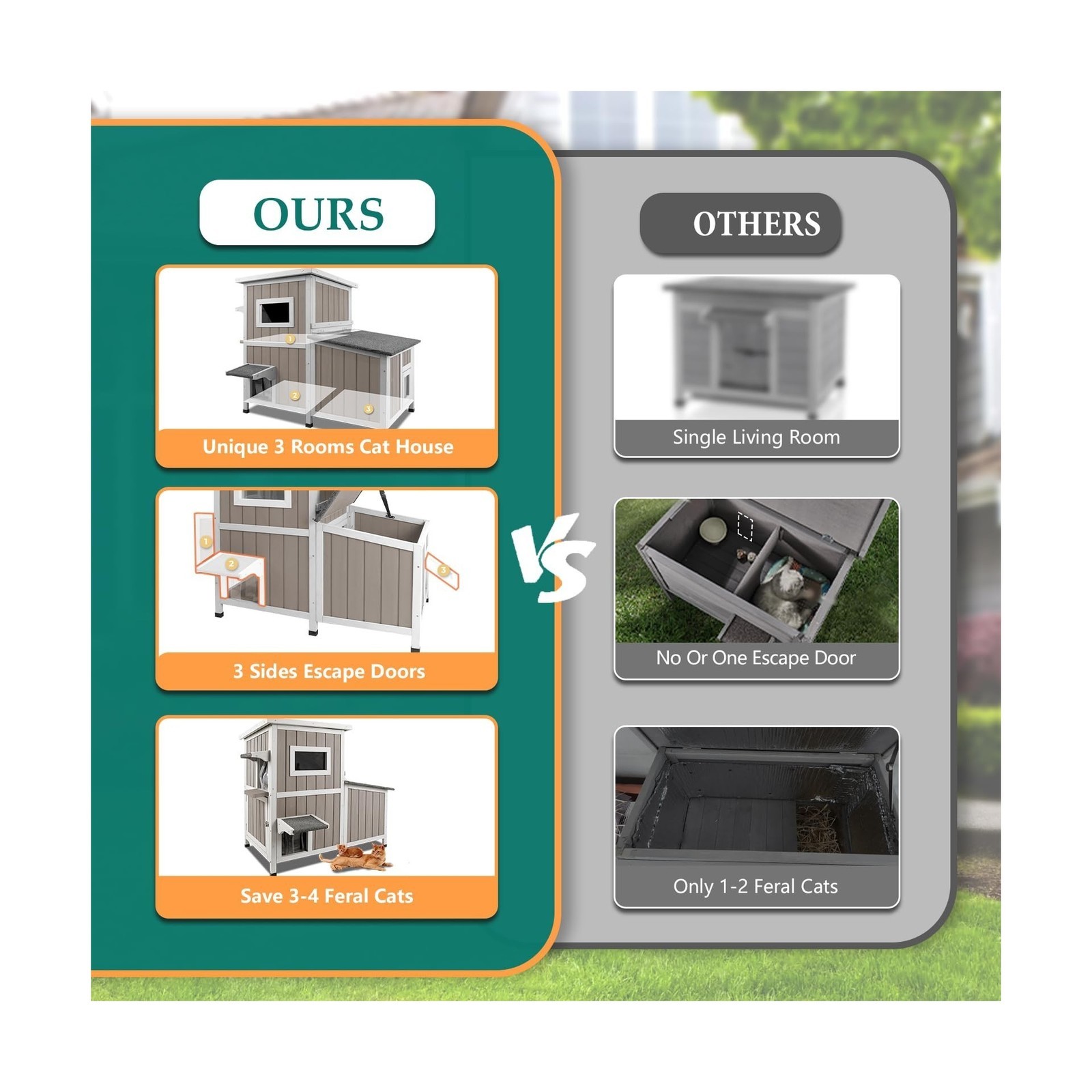PetsCosset Cat House for Outdoor Cats Outside Feral Cat Shelter Weatherproof ...