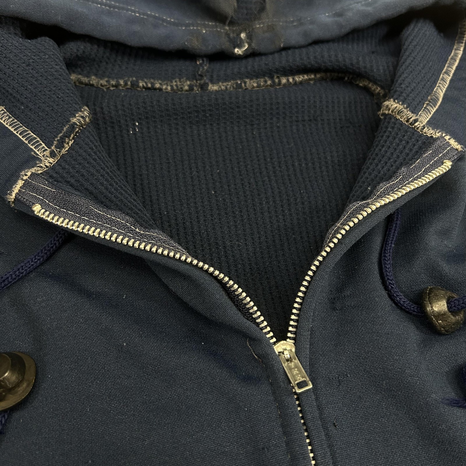 как выглядит Vintage Full Zip Hoodie Mens Medium Thermal Foam Filled Sweatshirt Thrashed 60s фото