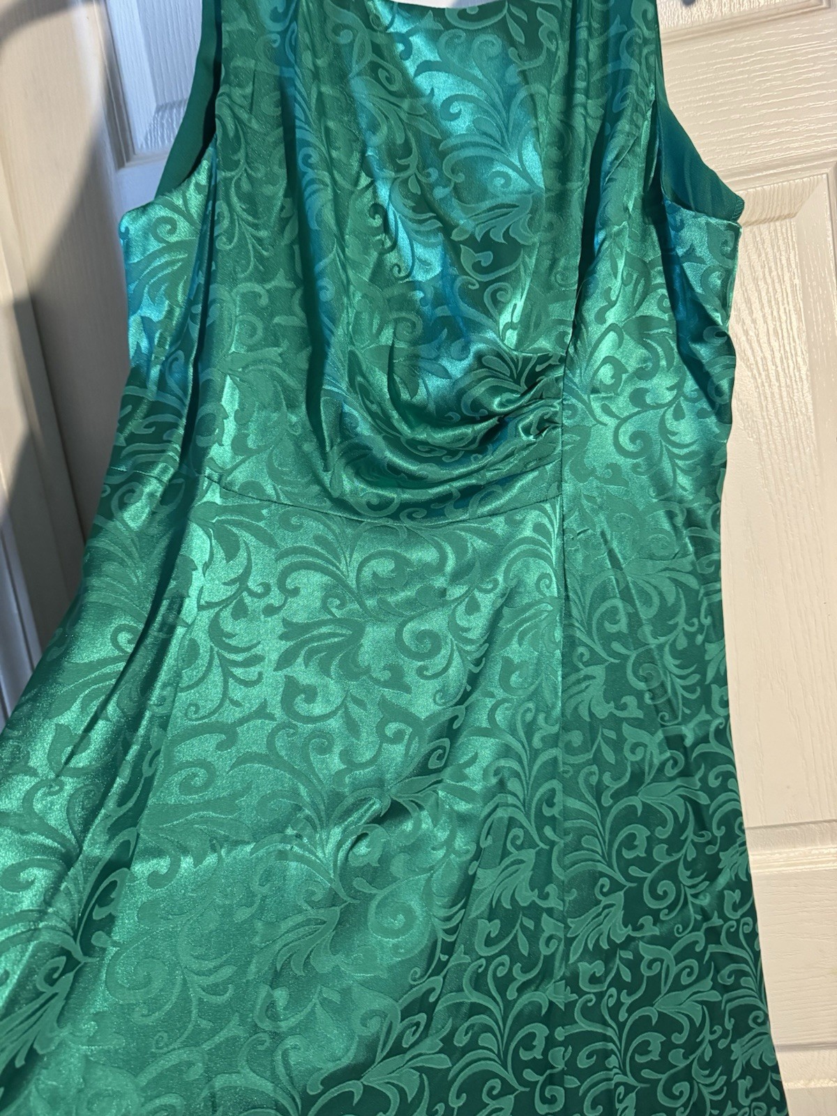 как выглядит NWT Connected Apparel Jacquard Midi Dress Satin Green Size 14 New фото