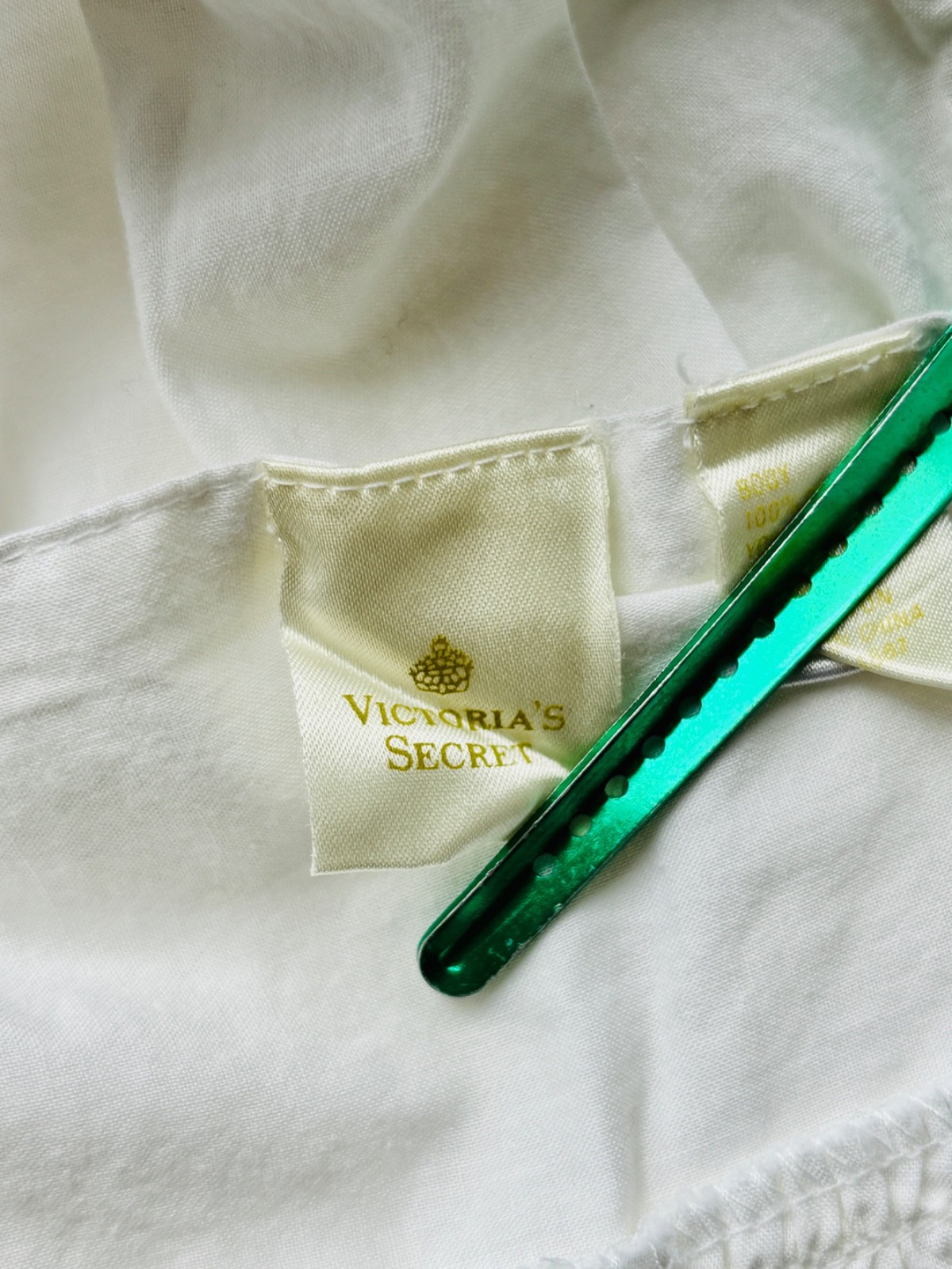 VTG VICTORIA'S SECRET WHITE COTTON LACE GOLD LABEL ROMANTIC COTTAGE NIGHTGOWN M