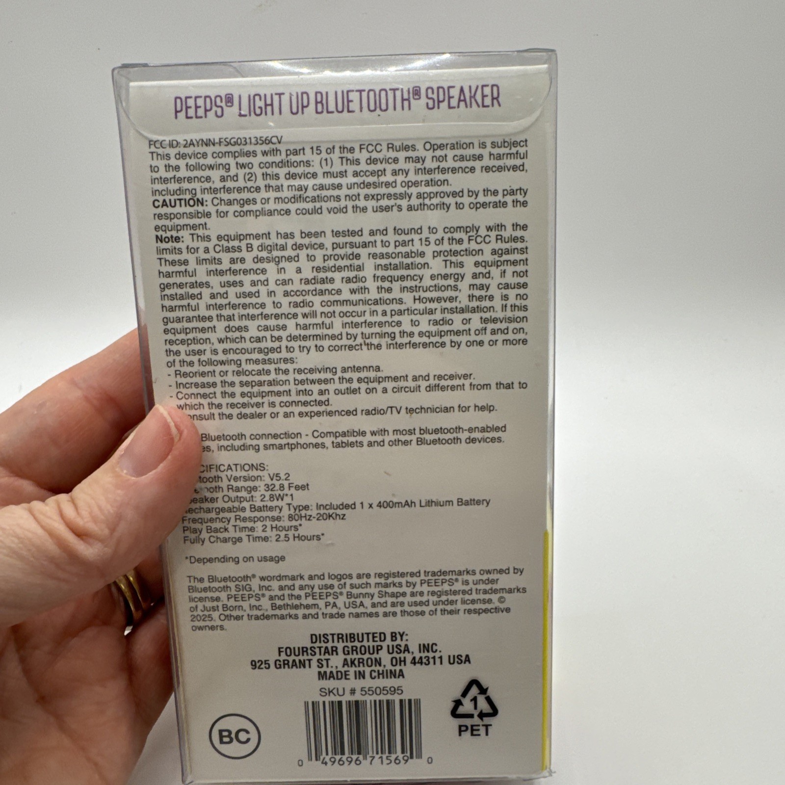 Peeps Pink Light Up Bluetooth Speaker Micro USB Rechargeable Night Light Button