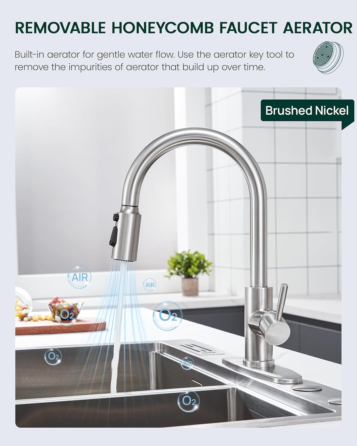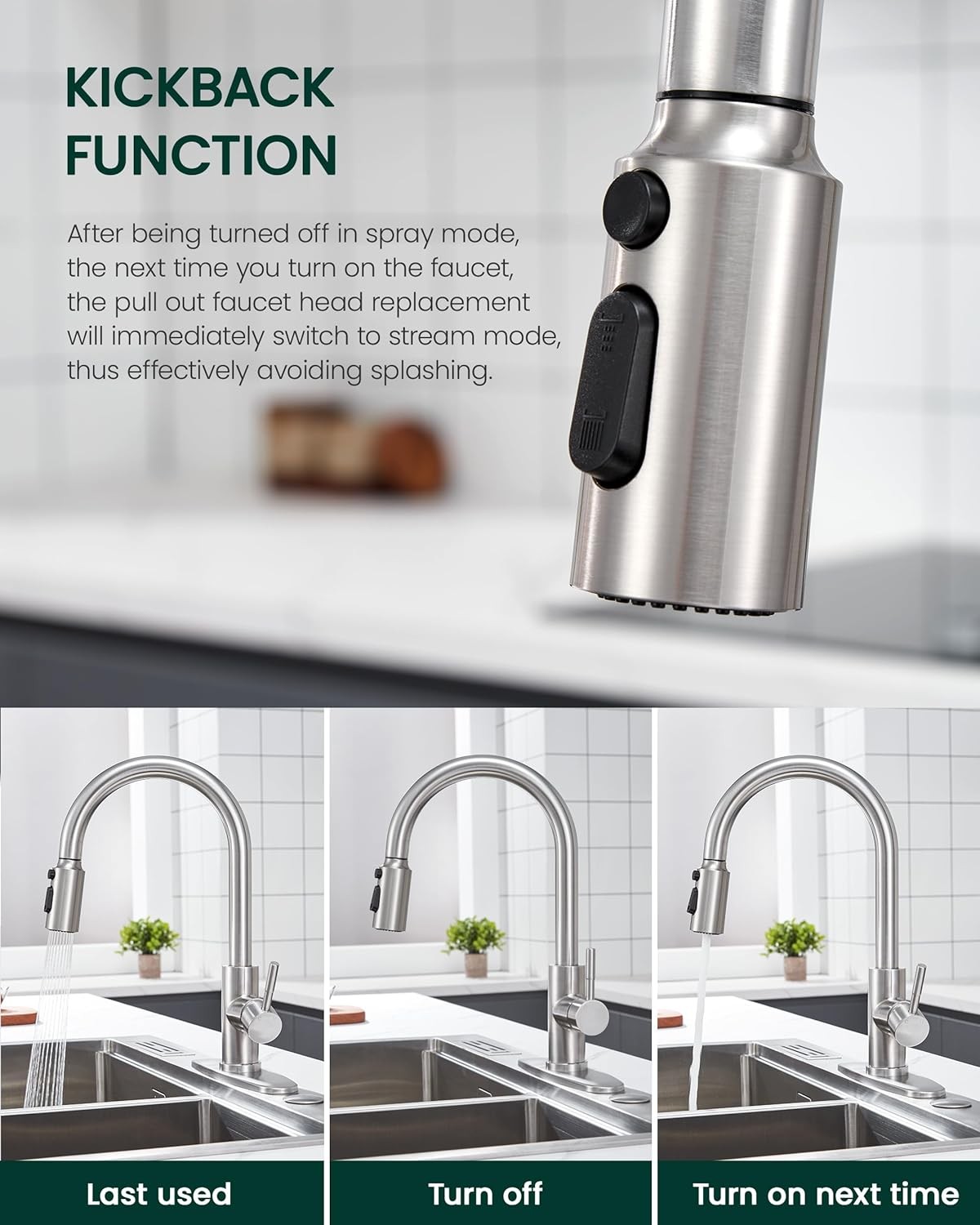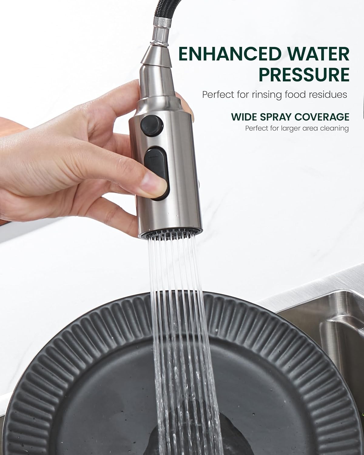 Pull Down Faucet Head Replacement with 15 Adapters, 3 Function Spray Nozzle