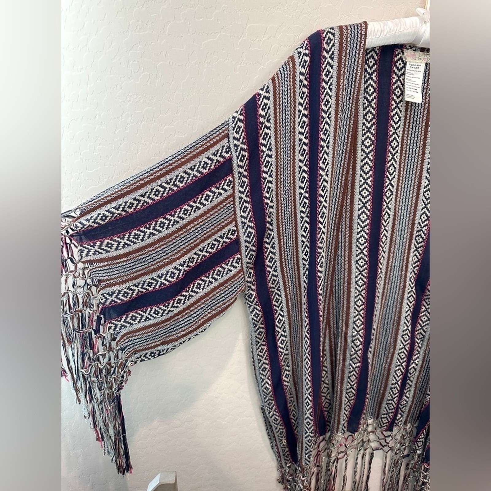 как выглядит FREE PEOPLE Fiesta Shimmer Fringe Kimono Cardigan Open Front Boho One Size фото